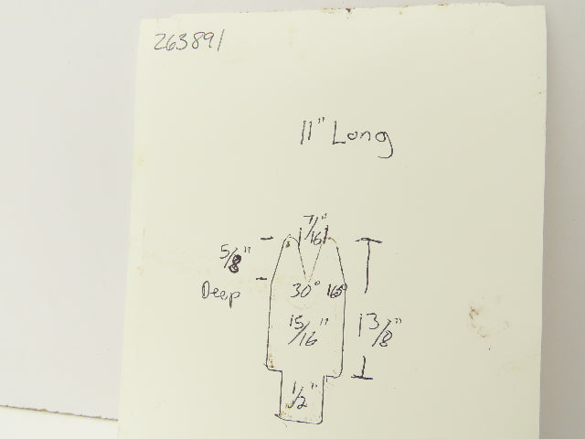 Press Brake Die 11" Long 30° V 7/16" W 5/8" D 1-3/8" H 1/2" Tang
