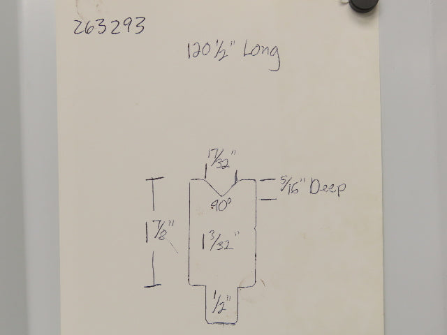 Press Brake Die 120-1/2" Long 90° V 17/32" W 5/16" D 1-7/8" H