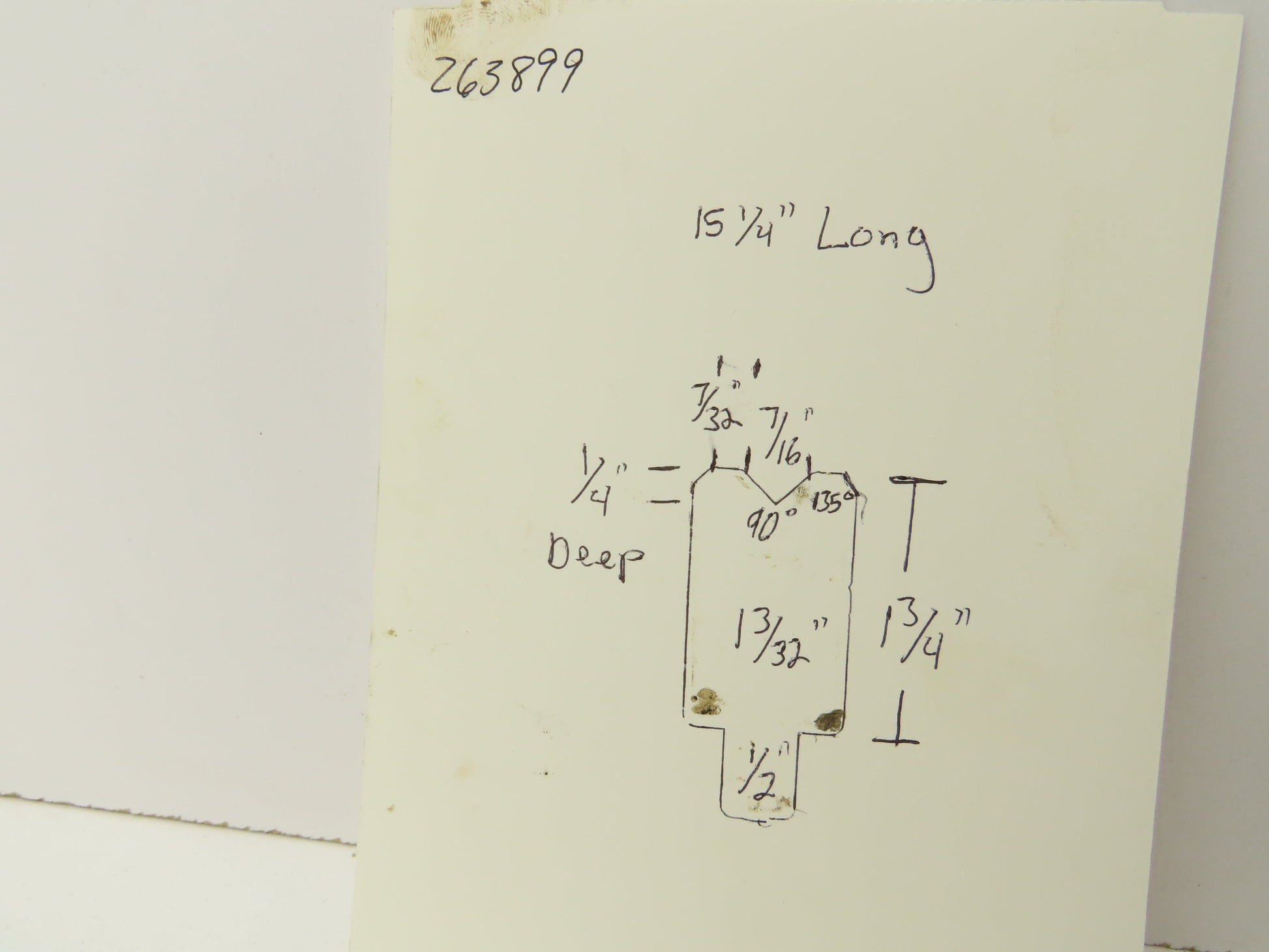 - The V is 90°. 7/16" wide 1/4" deep.