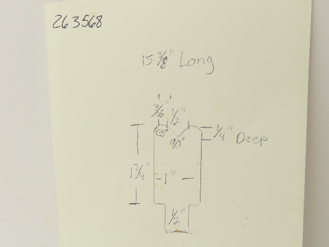 Press Brake Die 15-3/8" Long 90° V 1/2" W 1/4" D 1-3/4" H 1/2" Tang