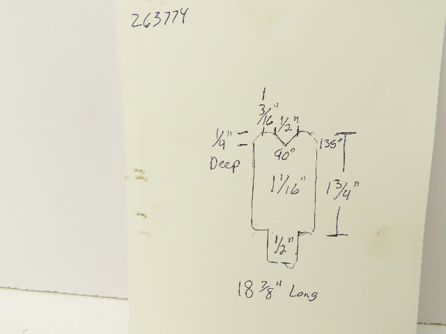 Press Brake Die 18-7/8" Long 90° V 1/2" W 1/4" D 1-3/4" H 1/2" Tang