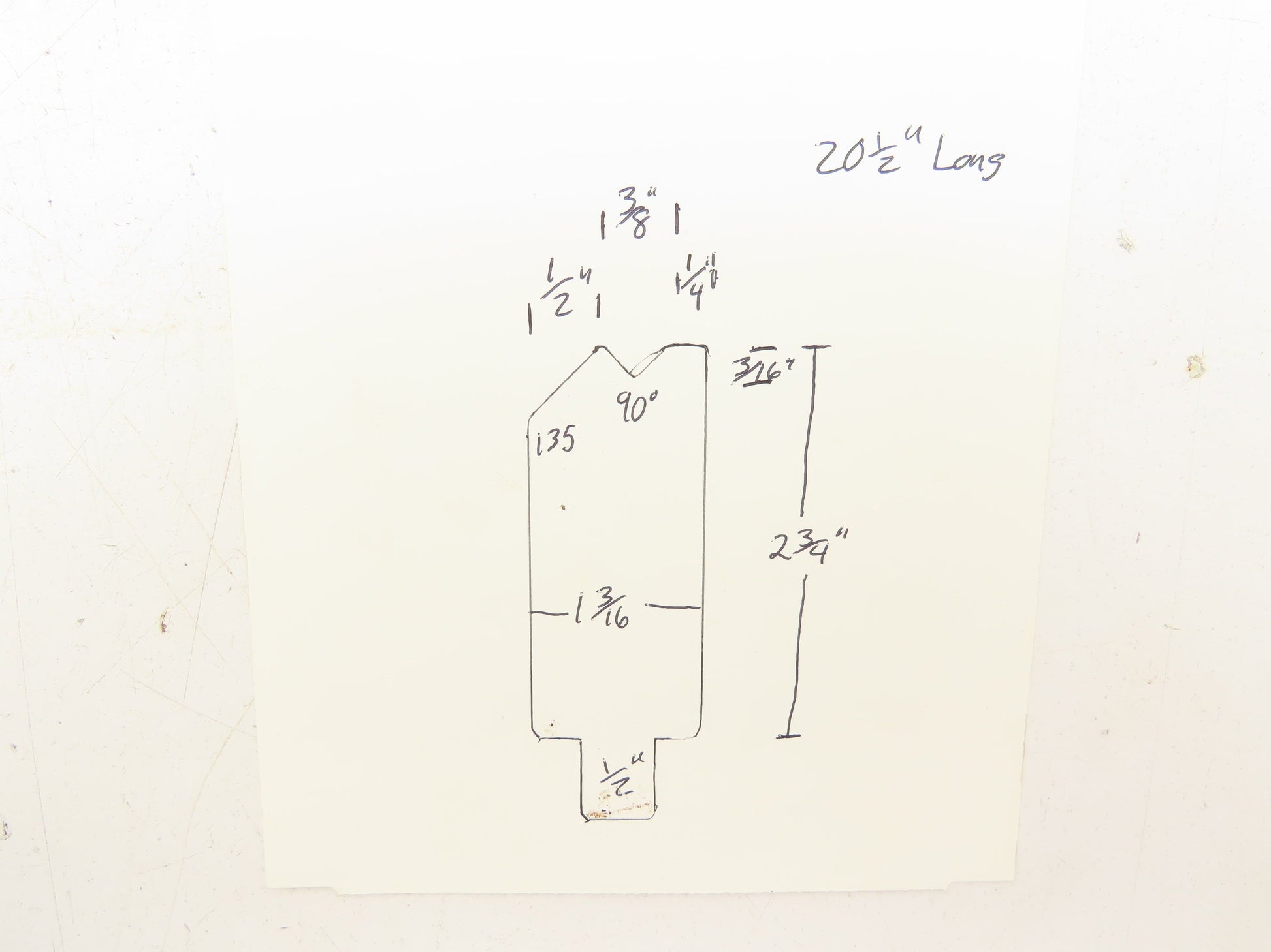 Press Brake Die 20-1/2" Long Offset 90° V 1/2" Tang 1-3/16" Wide 2-3/4" H
