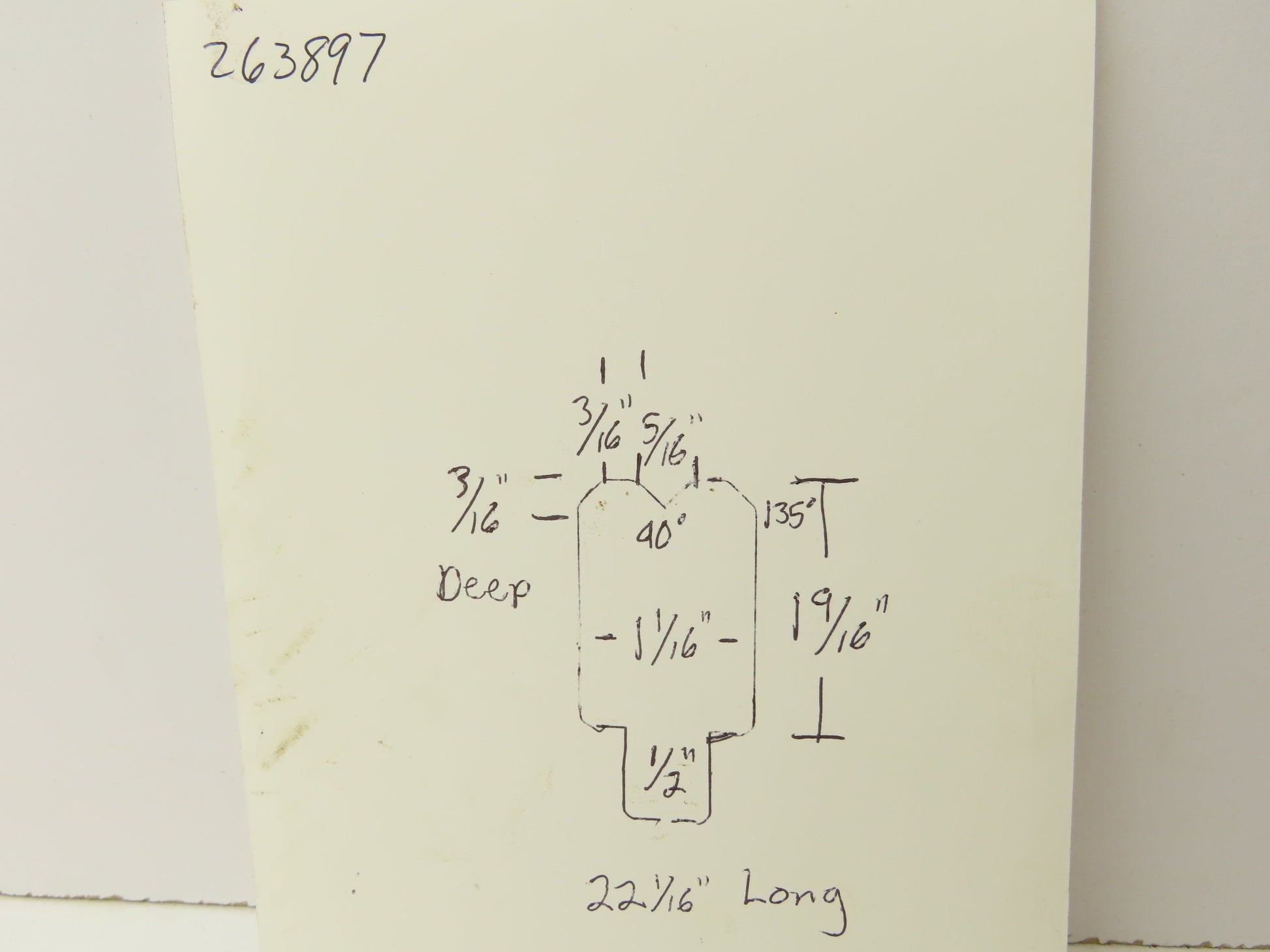 - The V is 90°. 5/16" wide and 3/16 deep.