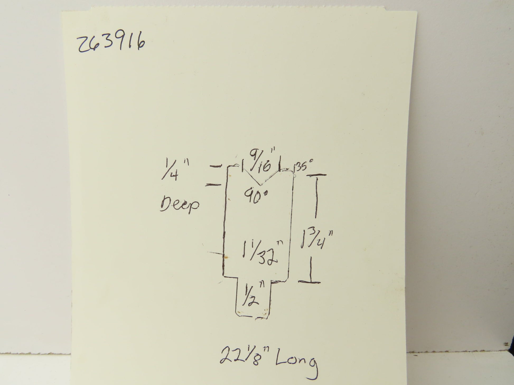 - The V is 90°. 9/16" wide 1/4" deep.