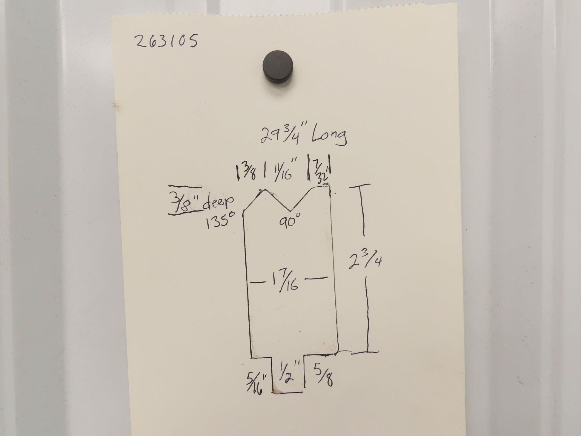 Press Brake Die 29-3/4" Long 90° V 1/2" Tang 1-7/16" W 2-3/4" H 11/16x3/8" V