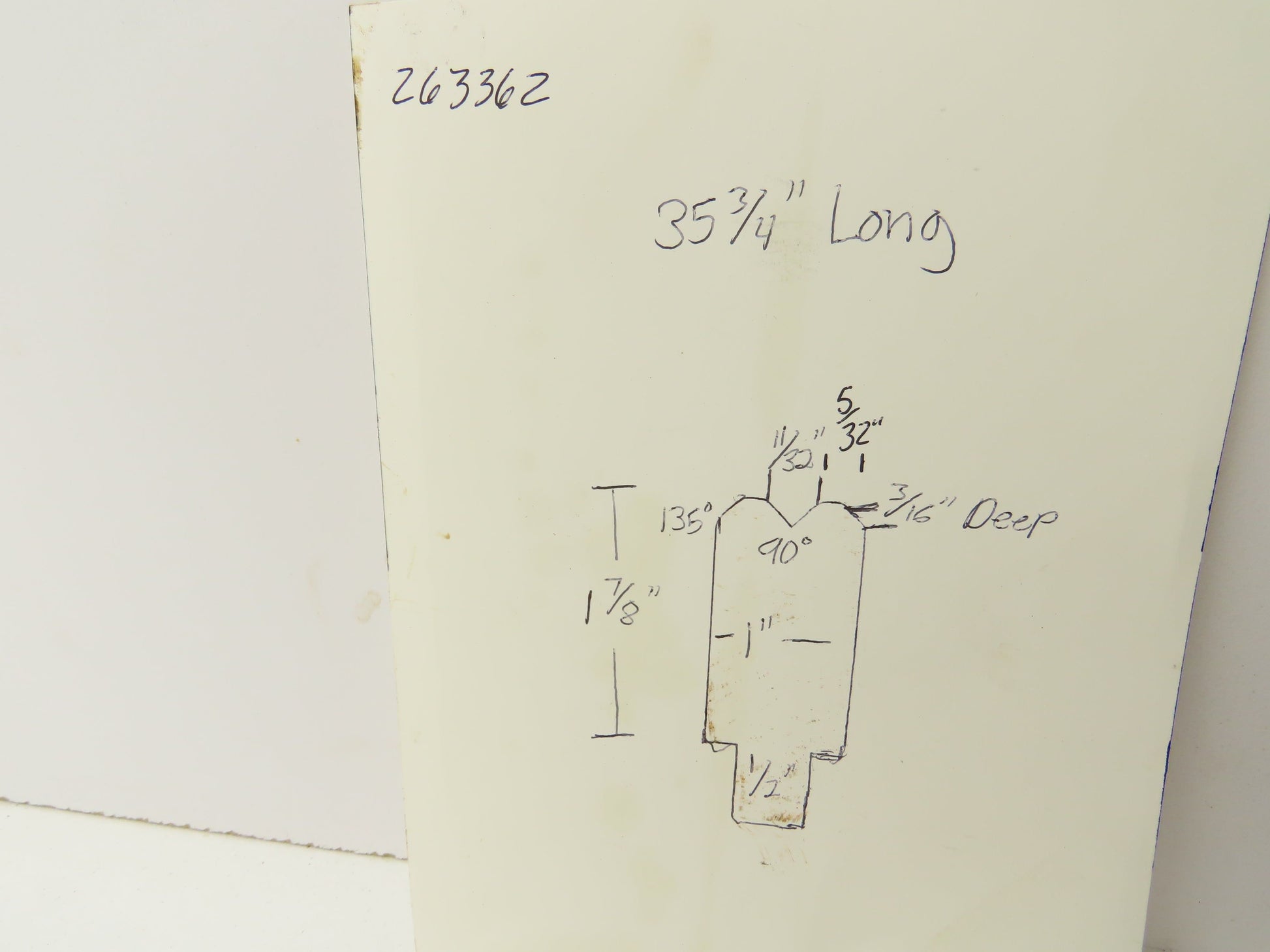 - The V is 90°. 11/32" wide and 3/16" deep.