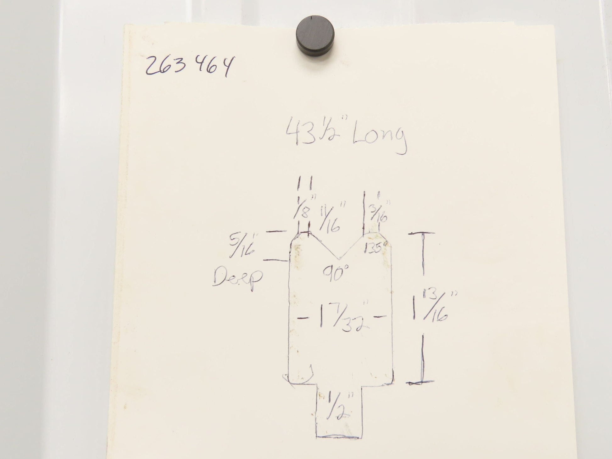 - The V is 90°. 11/16" wide and 5/16" deep.