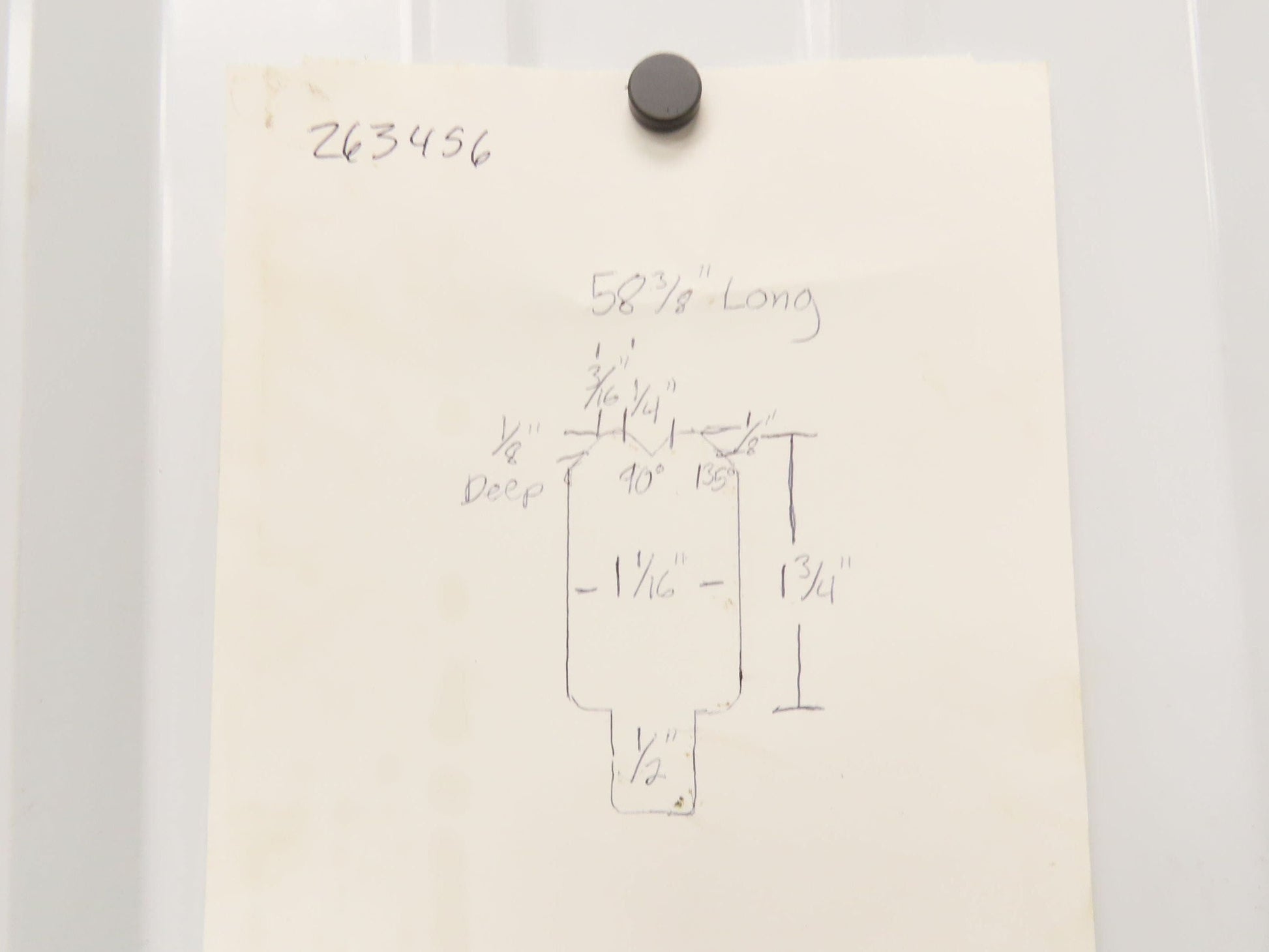 - The V is 90°. 1/4" wide and 1/8" deep.