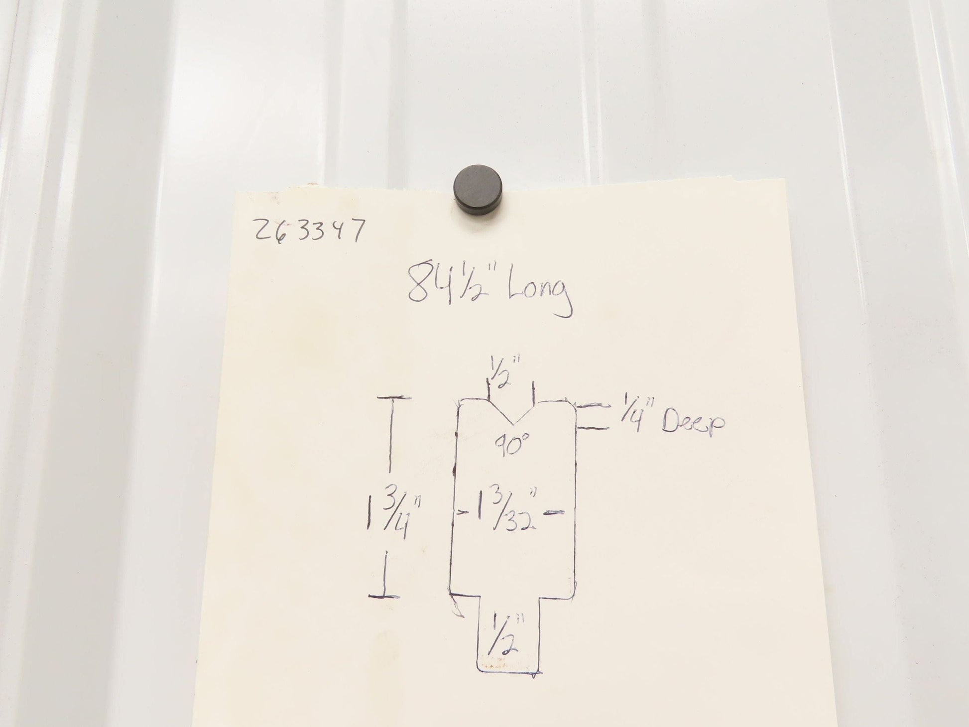 - The V is 90°. 1/2" wide 1/4" deep.