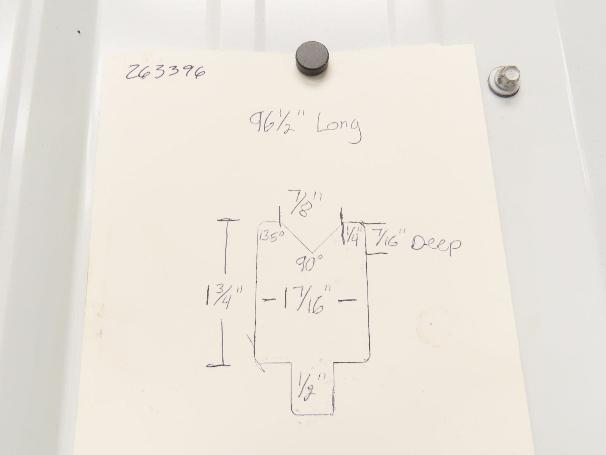 - The V is 90°. 7/8" wide and 7/16" deep.