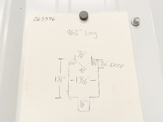 Press Brake Die 96-1/2" Long 90° V 7/8" W 7/16" D 1-3/4" H 1/2" Tang