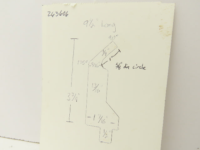 Press Brake Gooseneck Punch Die 9-1/2" Long 90° V 1/4" Finger 3-3/4" H