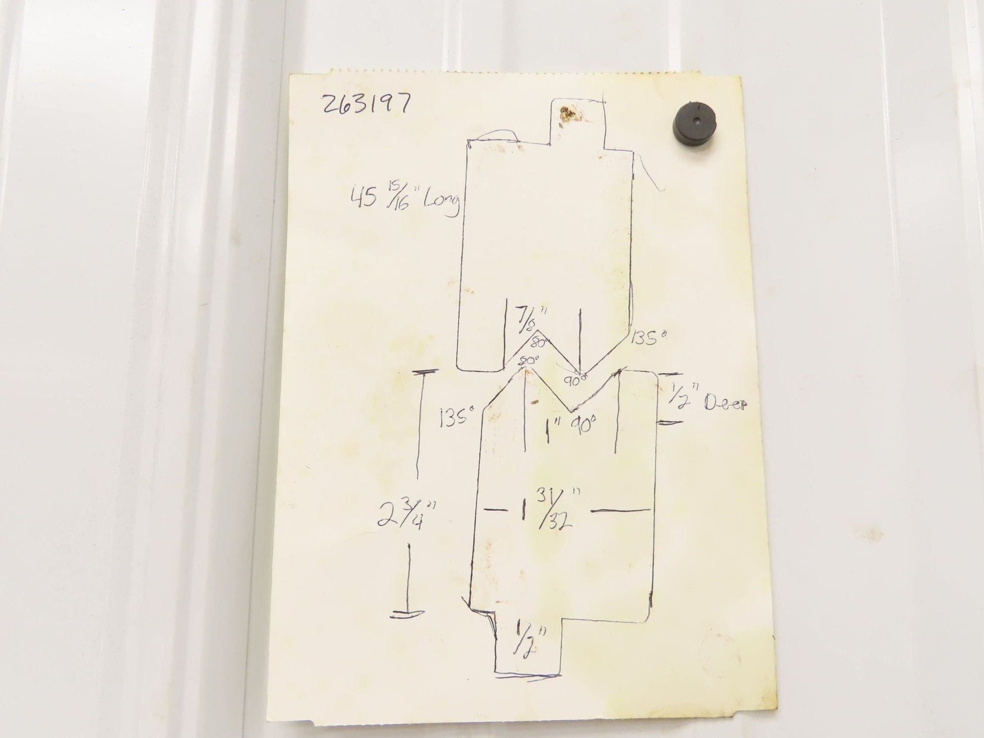 - This is for Z bending. 2 Bends in one stroke. One V is 90° with 1" opening and 1/2" deep. The other is 80° and 7/8" wide.