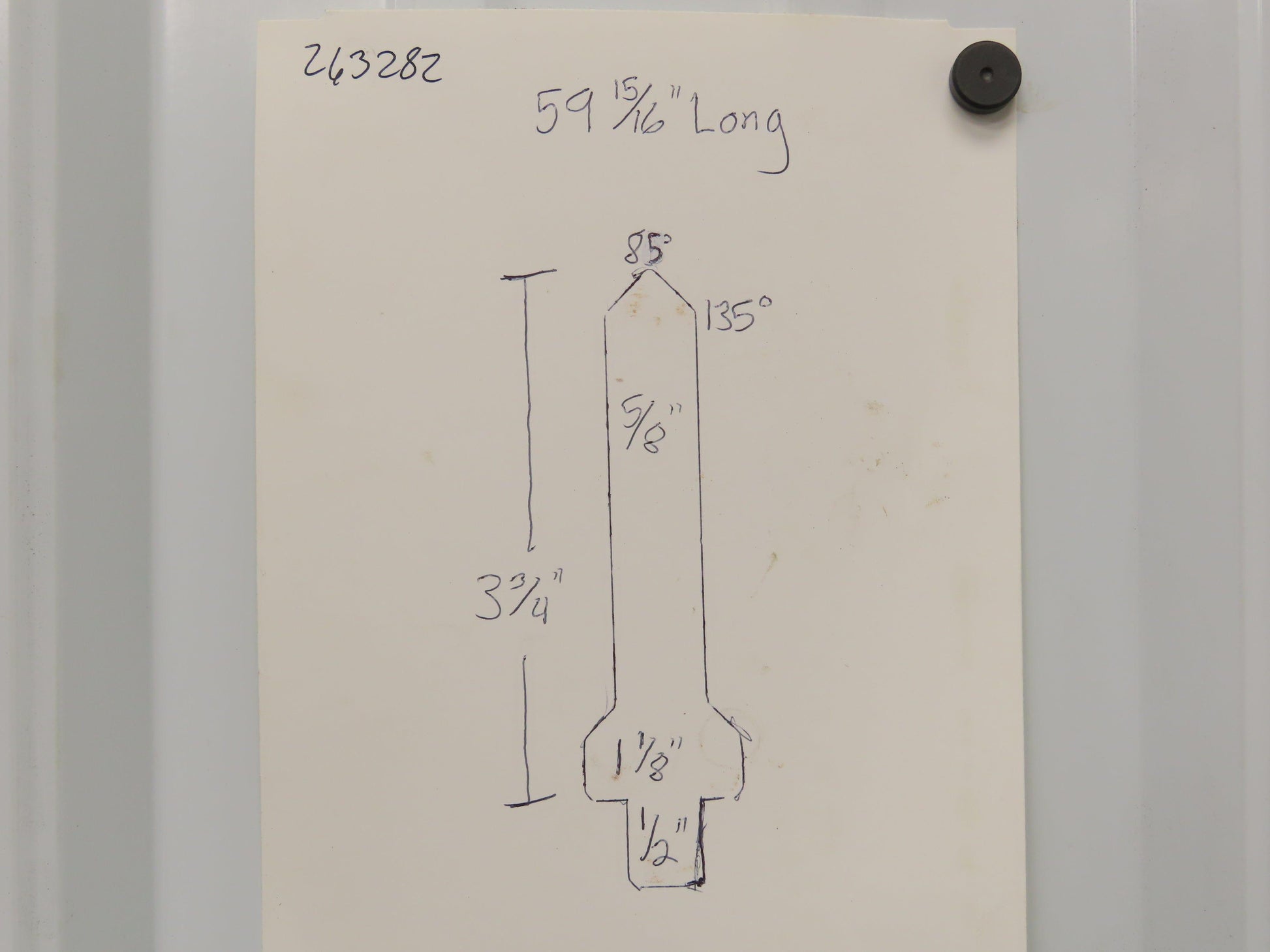 - The V is 85°. 5/8" wide.