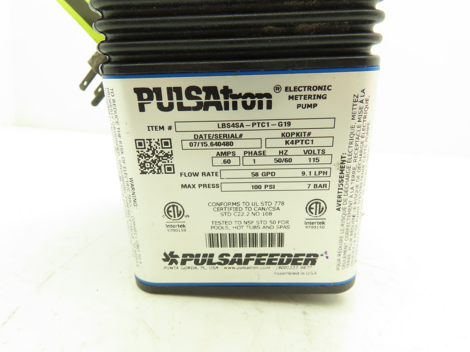 Pulsafeeder Pulsatron Electronic Dosing Metering Pump 58 GPD 100 PSI 115V