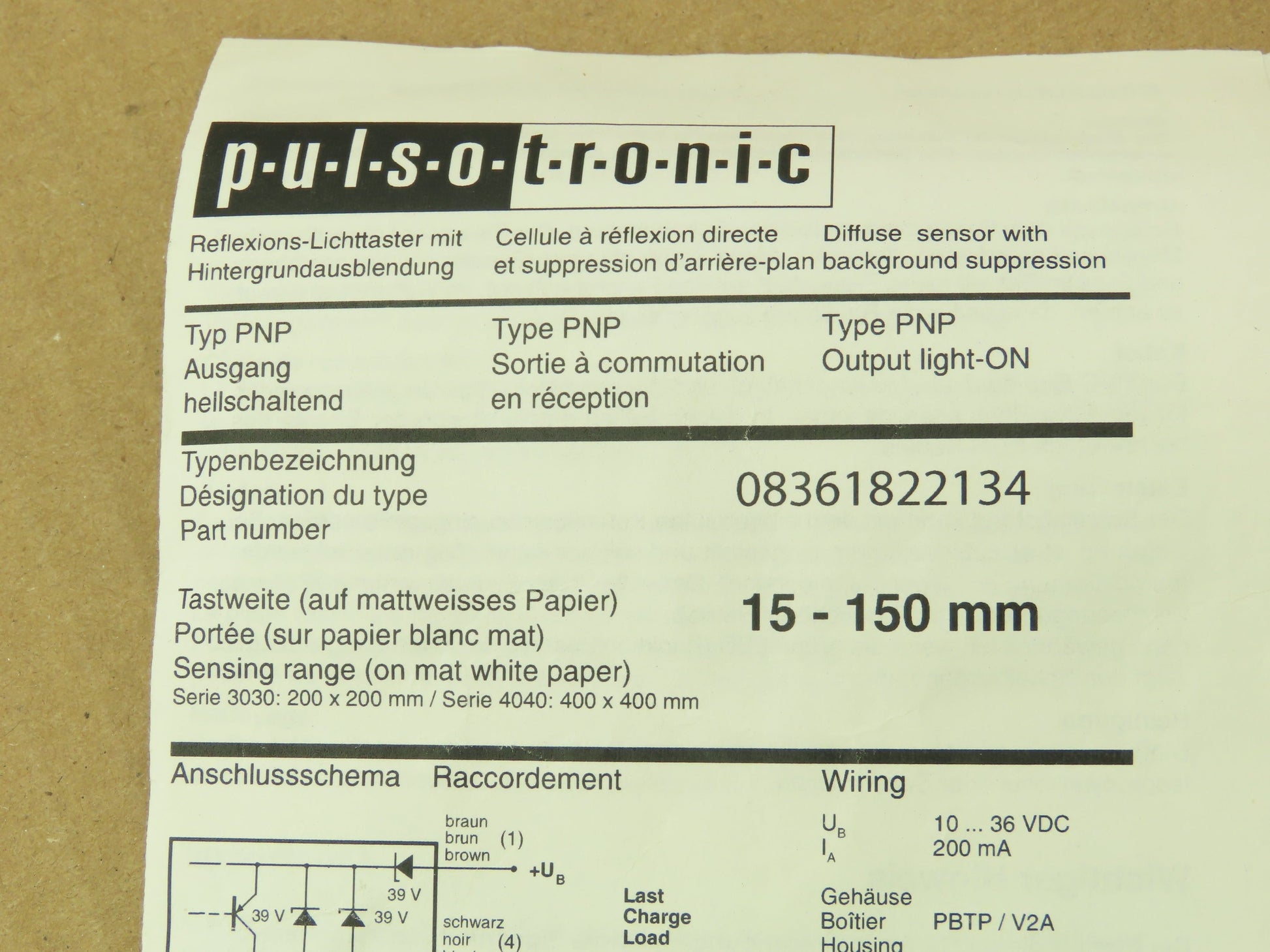 Pulsotronic 08361822134 Proximity Sensor 15-150MM