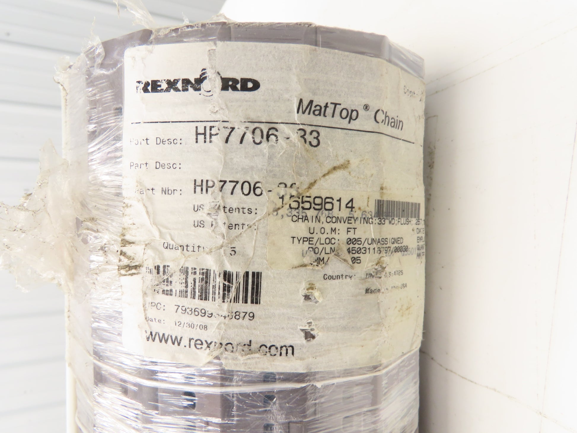 Rexnord HP7706-33 MatTop Perforated Top Plastic Conveyor Chain 33"W 10' Length