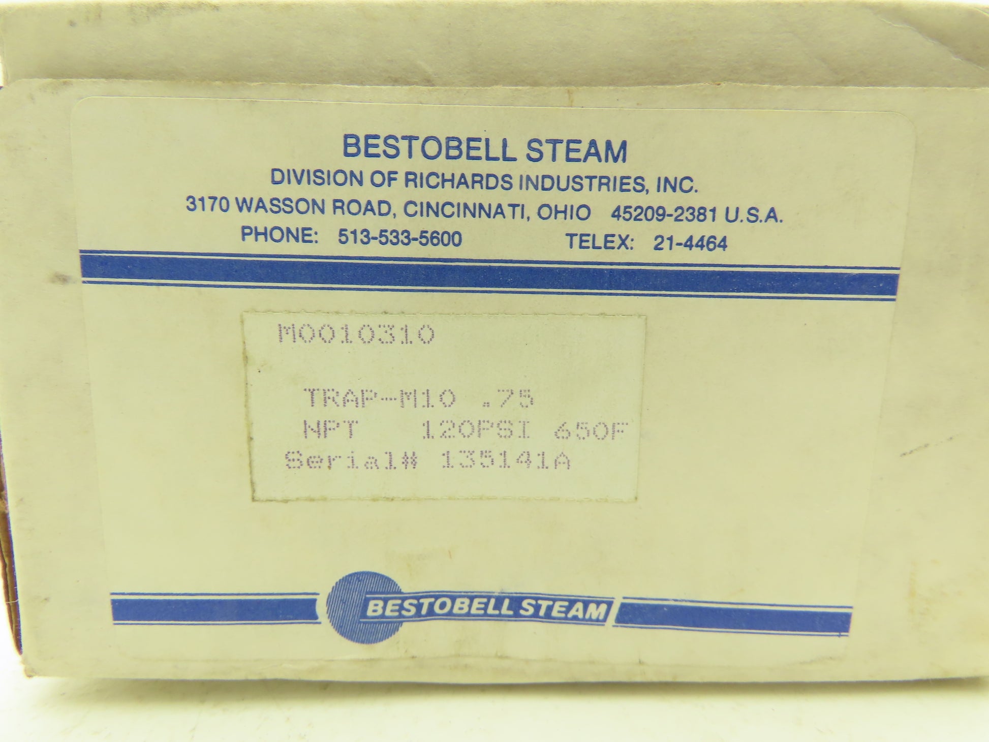 Richards Industries Bestobell Steam TRAP-M10 3/4" NPT 120PSI 650°F 750PSIG MAX
