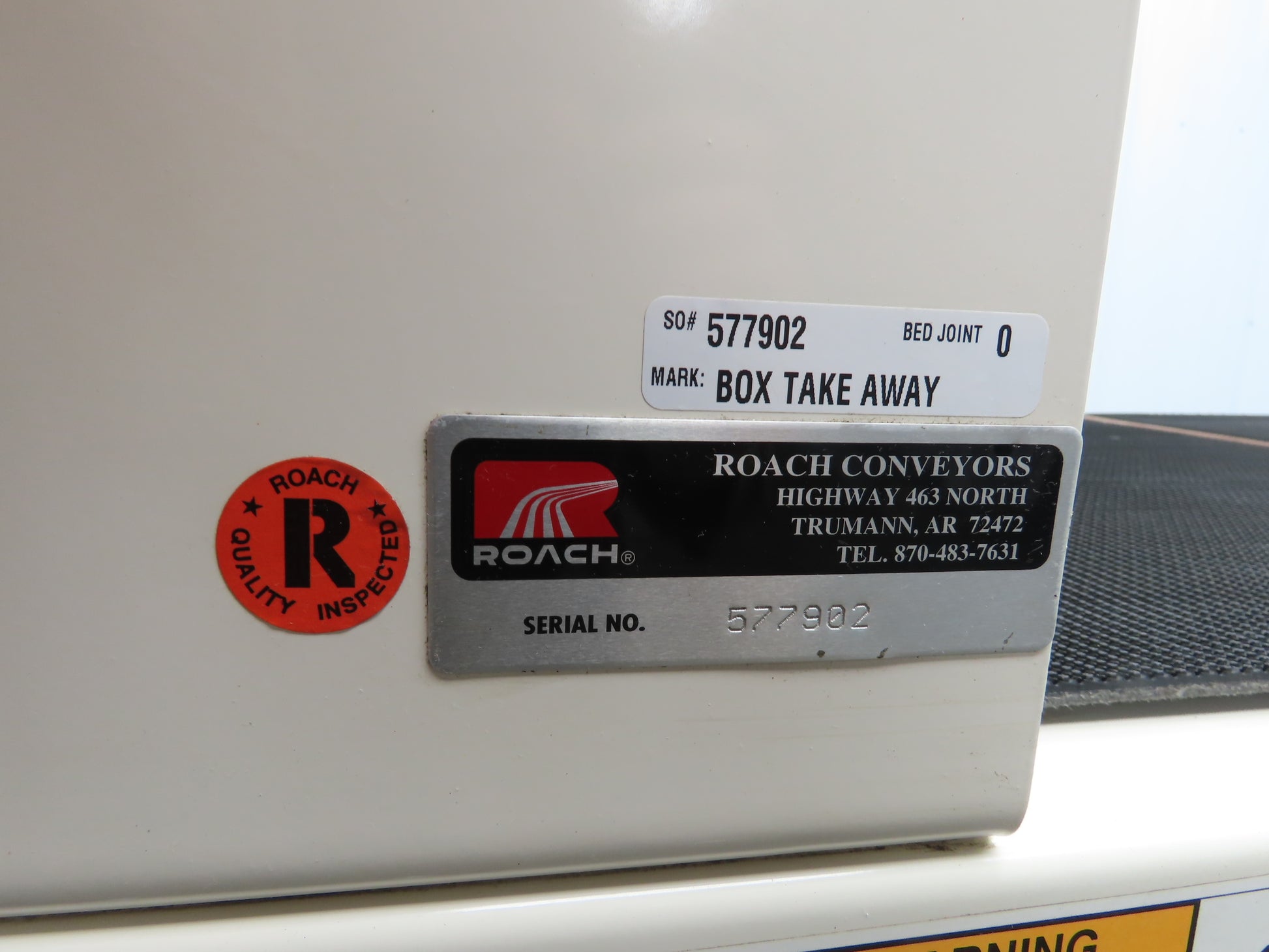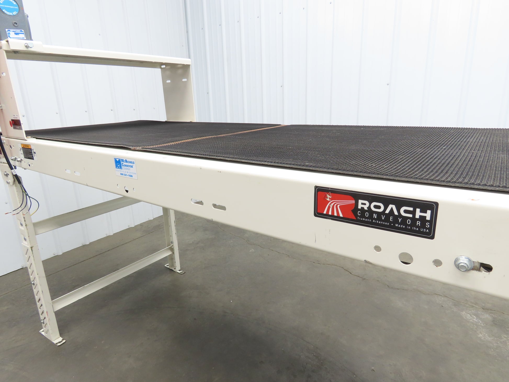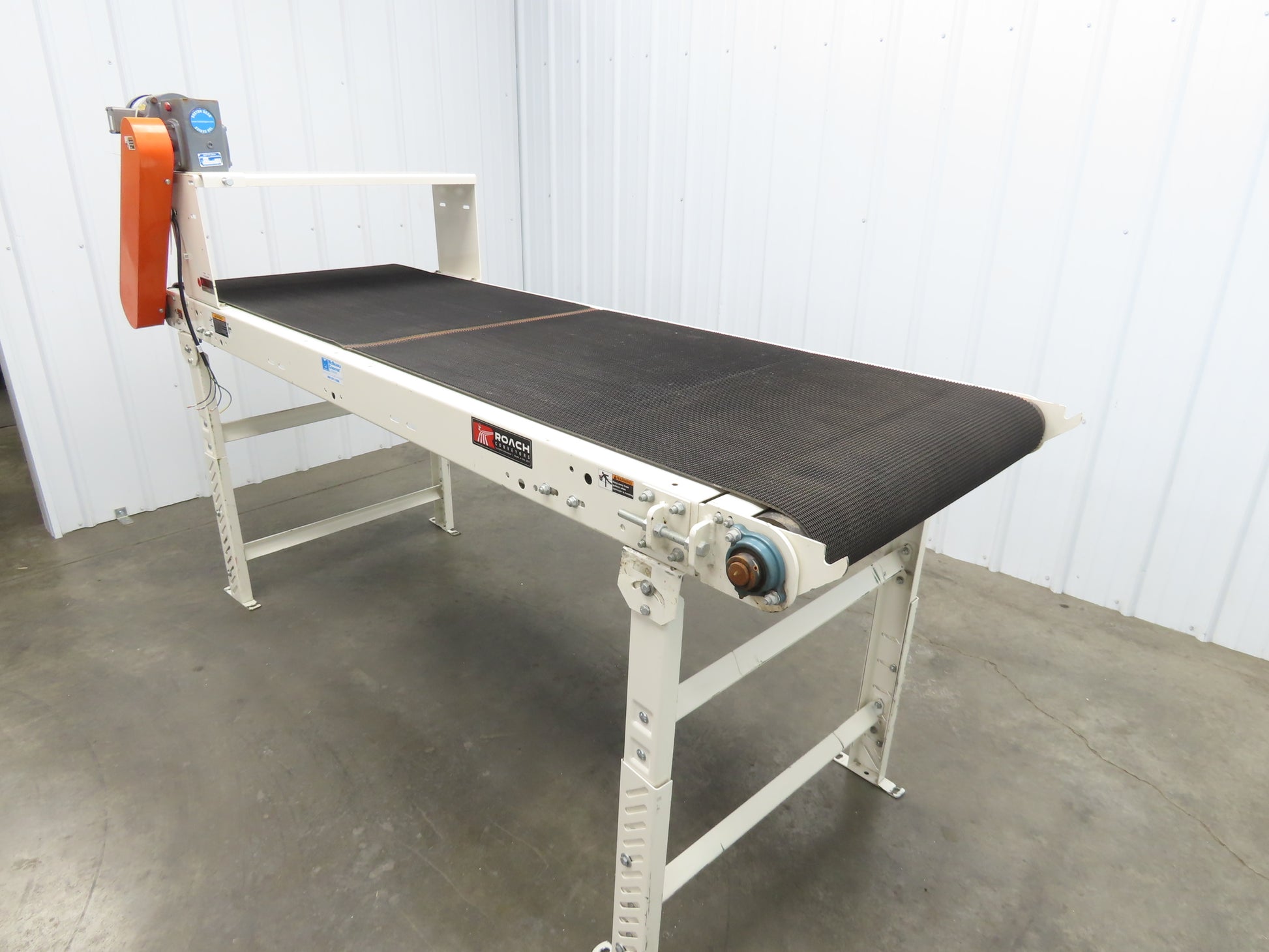 Roach 34"x 8' Slider Bed Grip Top Belt Conveyor .75Hp 3PH End Drive 40fpm