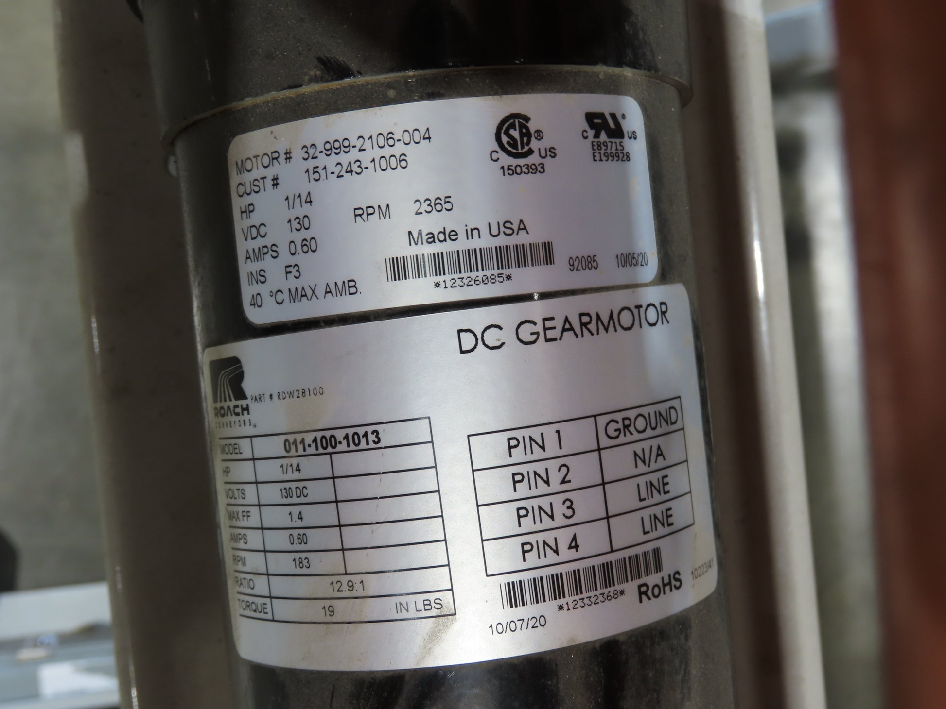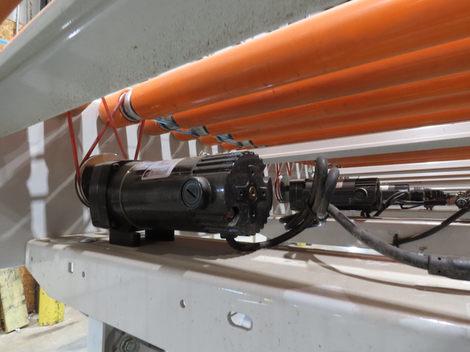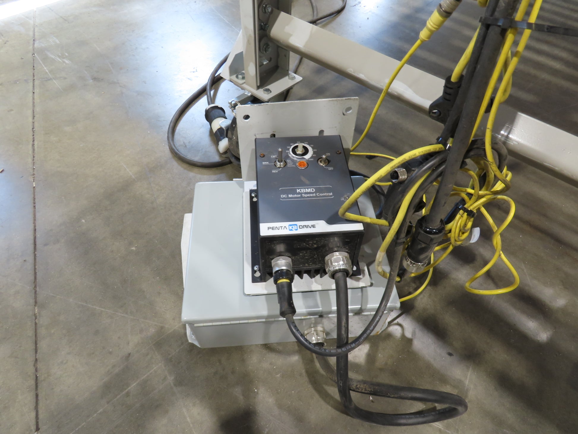 - Motor & Gearbox: Has a total of (12) 130VDC motors spaces 20" to 24" apart. Wired with a DC variable speed drive with power supply and control panel.
