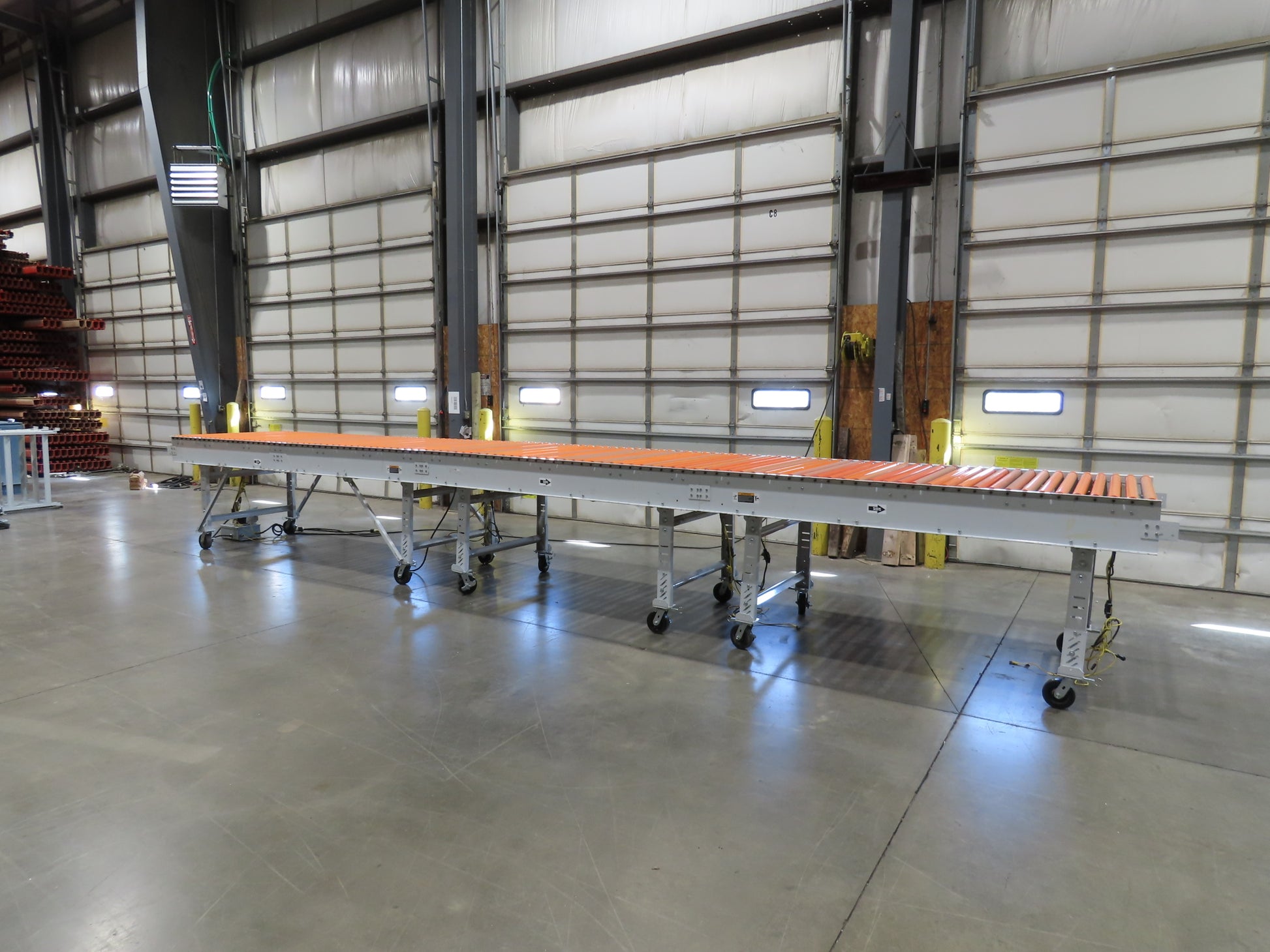 Roach 48"x 26' 9" Portable Roller Conveyor 115V Adj Speed O-Ring Belt Drive 44"H