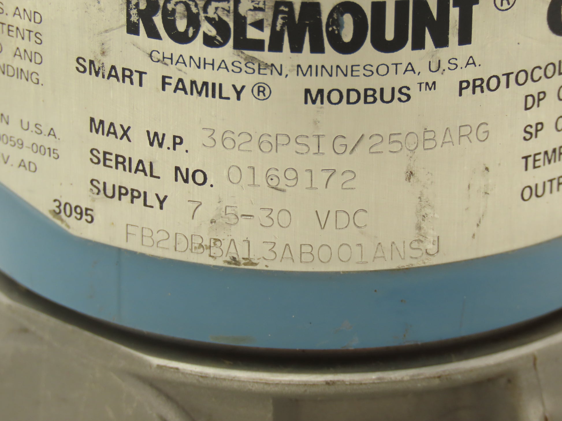 Rosemount 3095 FB2DBBA13AB001ANSJ Pressure Transmitter 7.5-30VDC 3626PSI