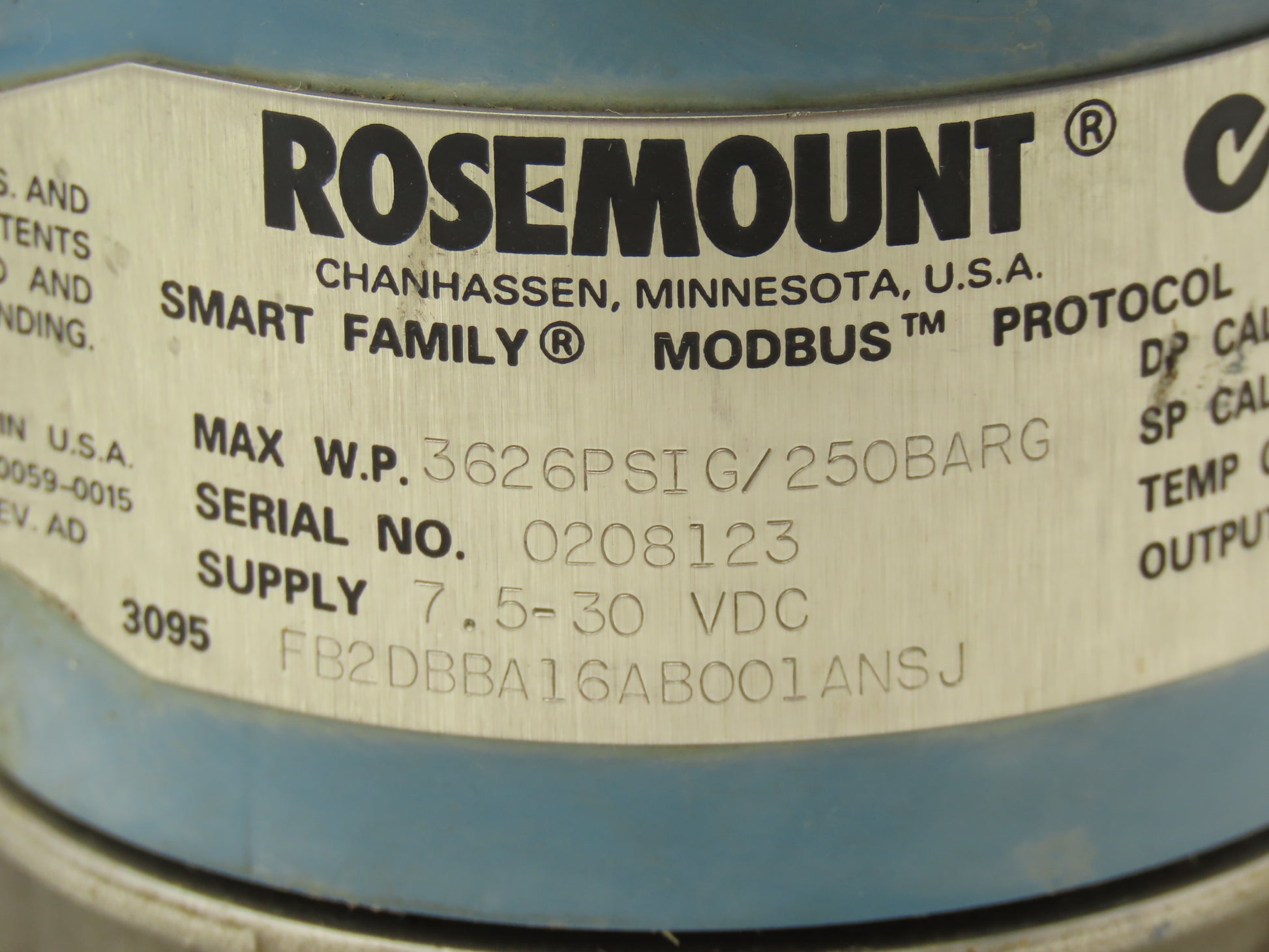 Rosemount 3095 FB2DBBA16AB001ANSJ Pressure Transmitter 7.5-30VDC 3626PSI