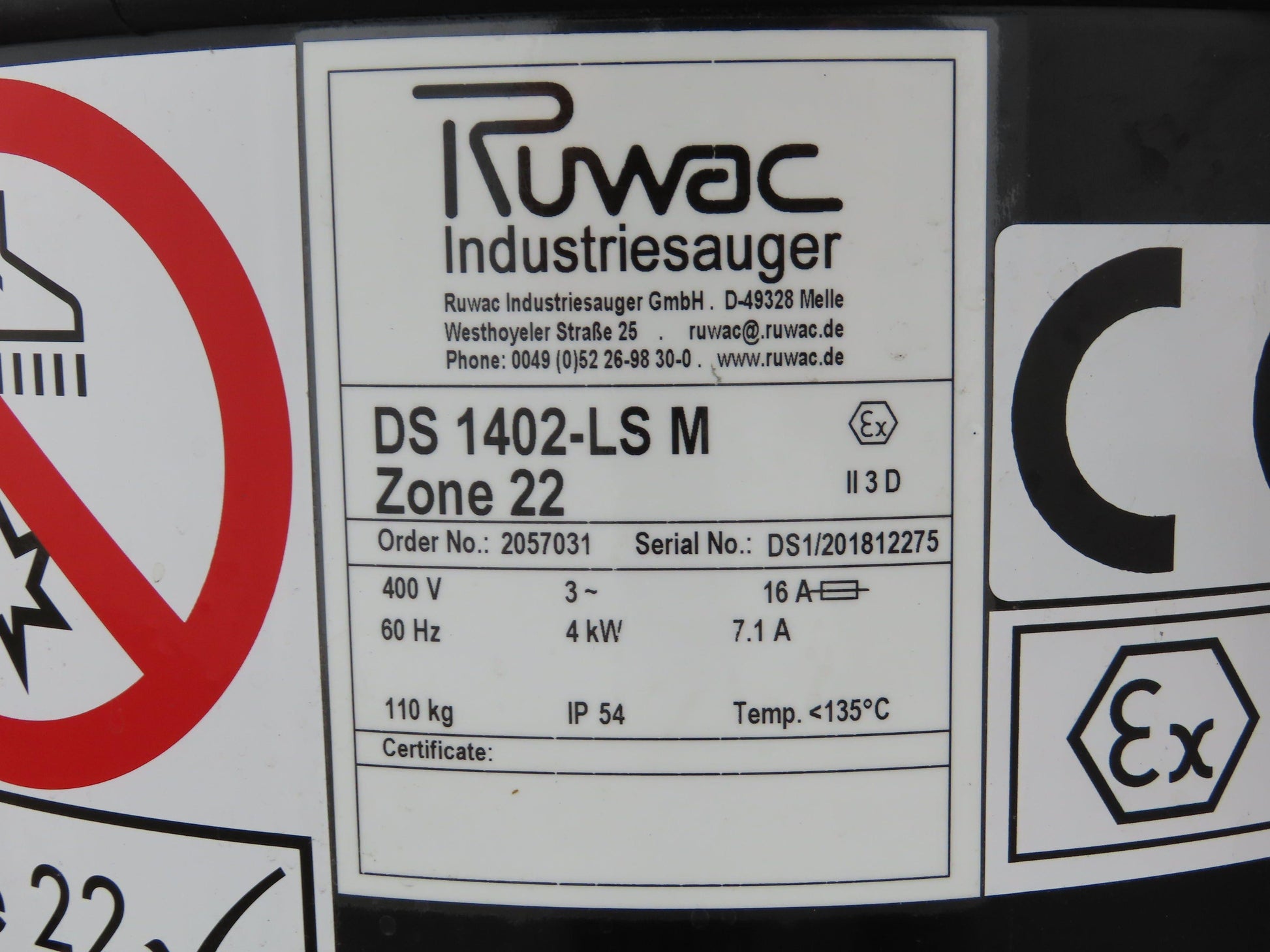 Ruwac DS 1402 LS M Industrial Mobile Vacuum 440 CBM/H 213mbar 3Ph 400V 4kw