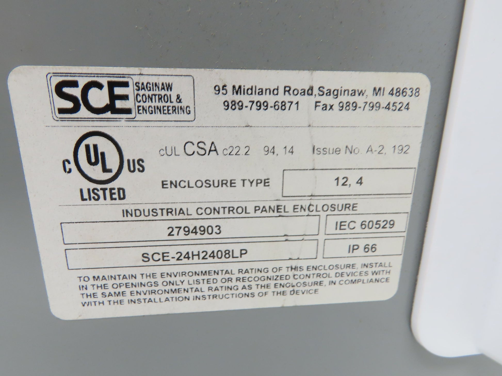 SCE SCE-24H2408LP Electrical Enclosure Junction Box 24x24x8" Type 12 Gray