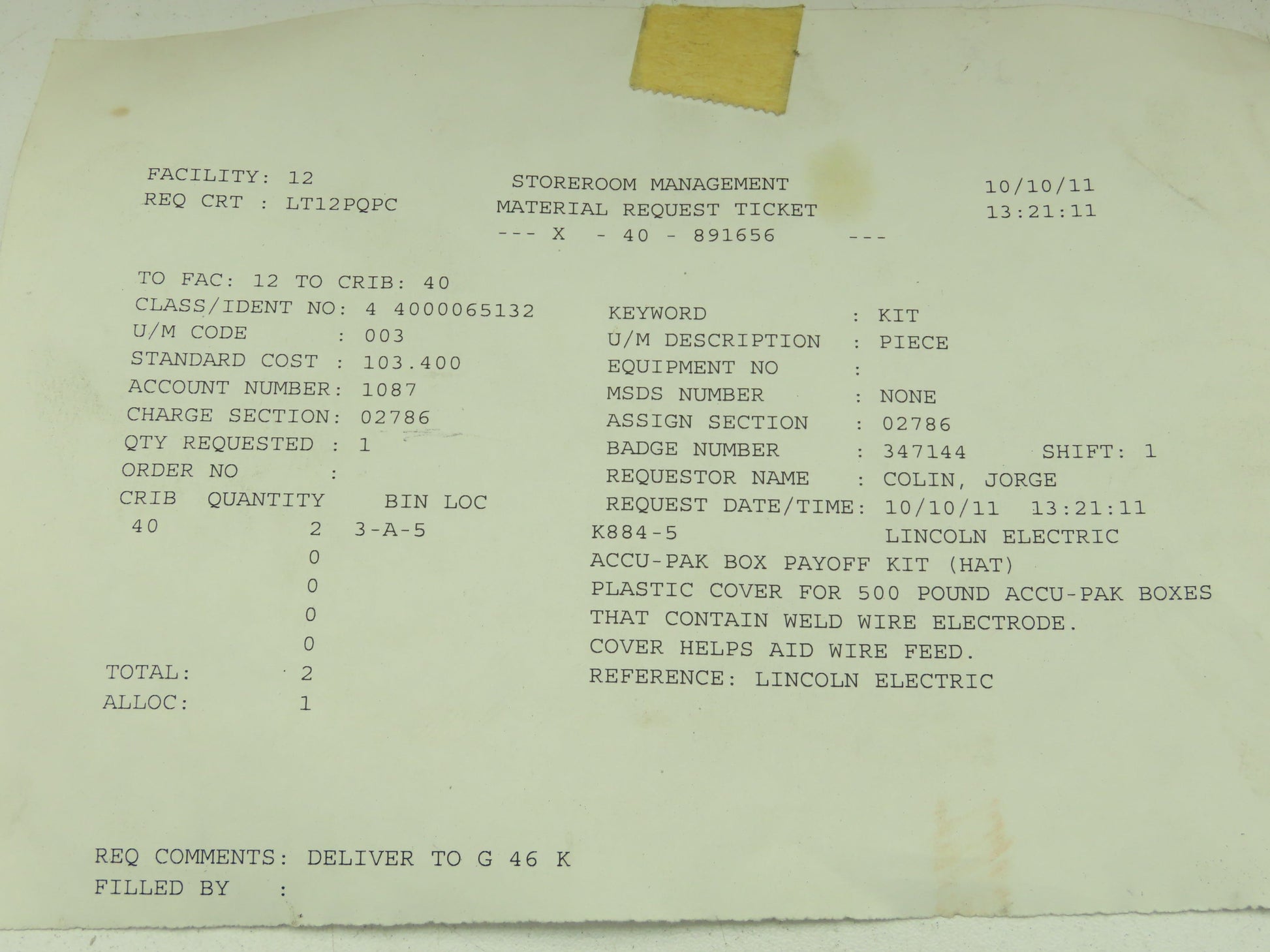 - Was taken out of a parts crib.