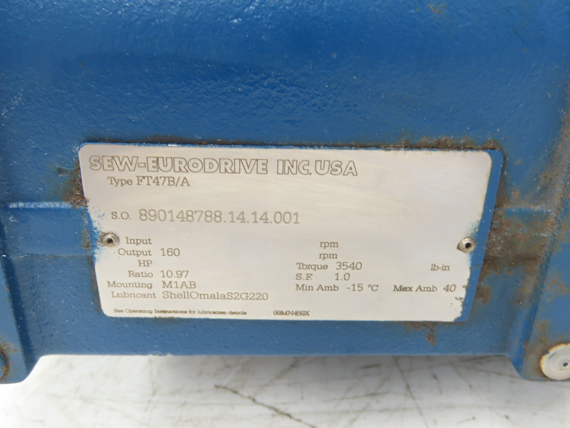 Sew Eurodrive FT47B/A SEW Helical Gearbox 10.97:1 Reducer 160rpm Hollow Shaft