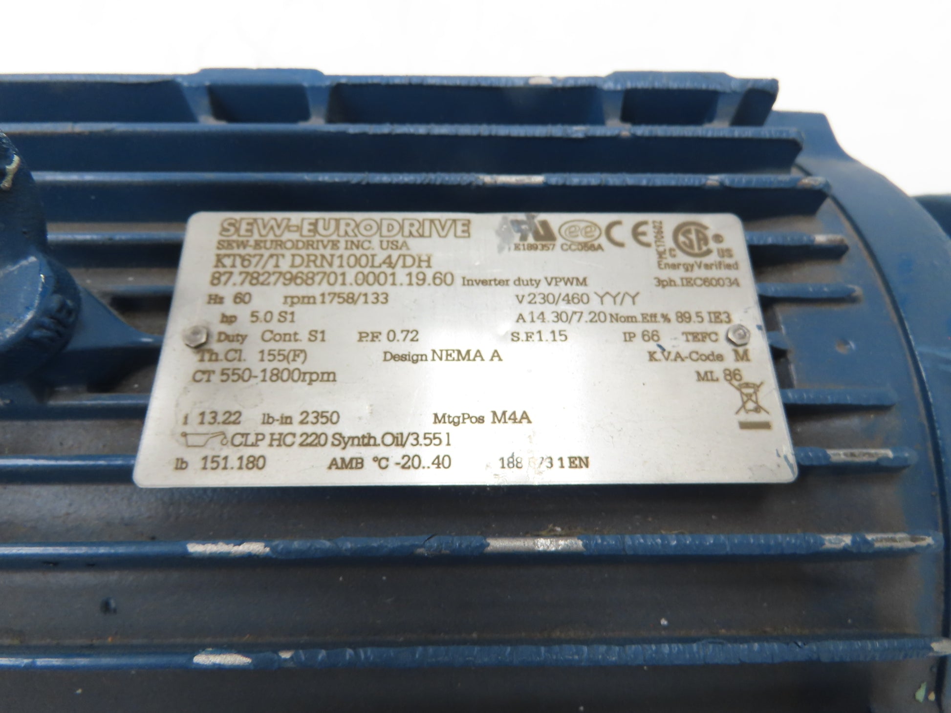 - Motor Brand and Model: Sew Eurodrive KT67/T DRN100L4/DH