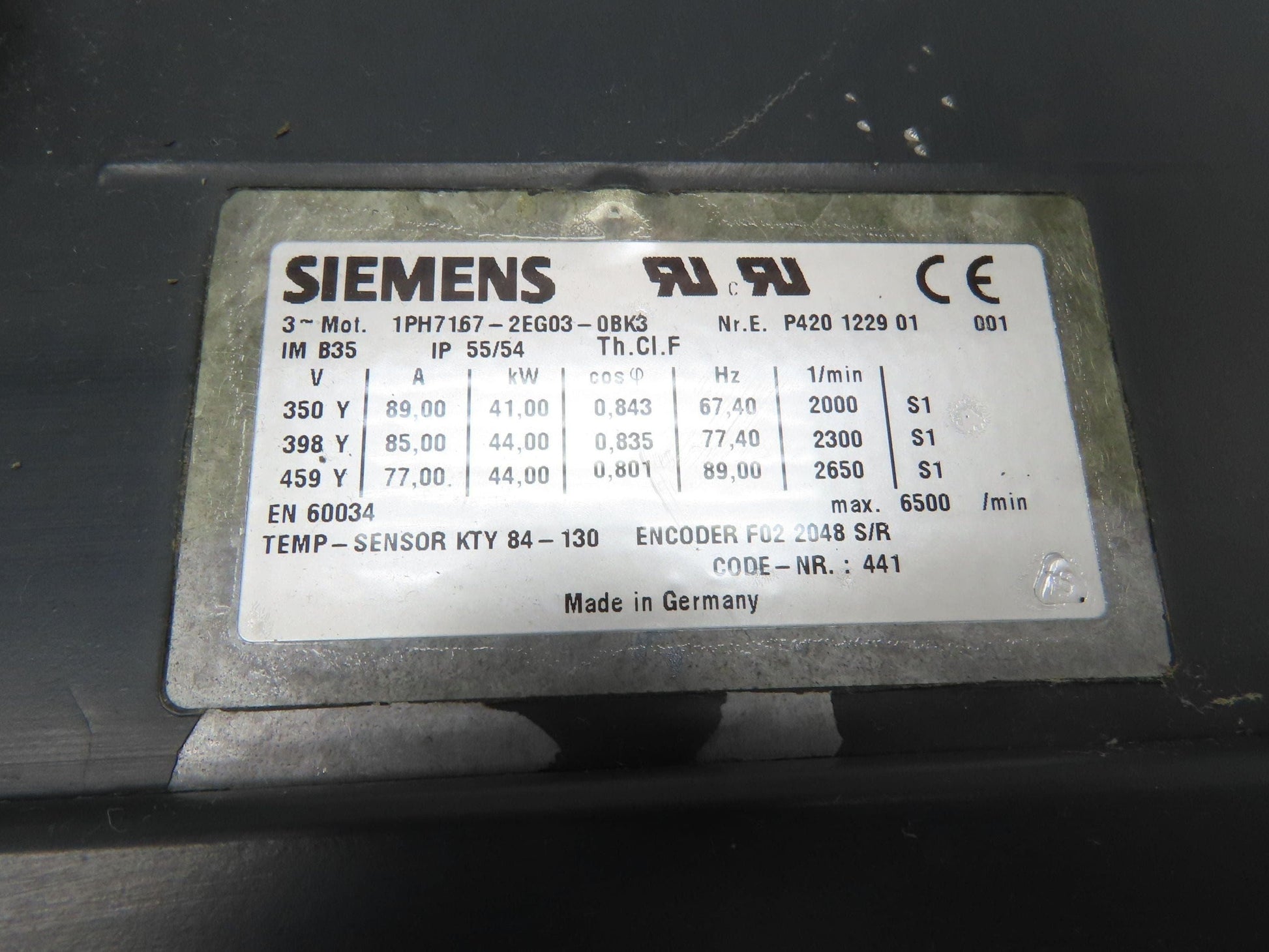 Siemens 1PH7167-2EG03-0BK3 AC Servo Motor 44kw 3PH Encoder F02 2048 S/R