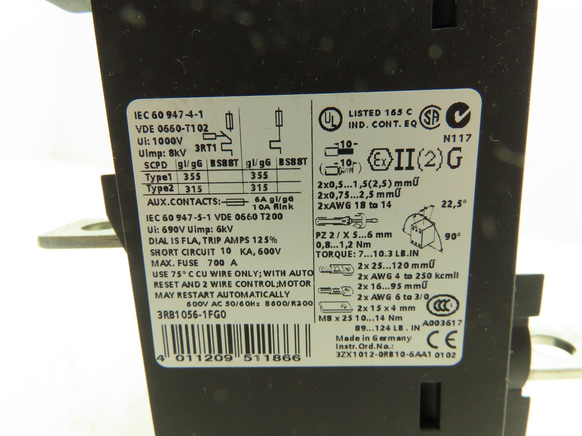Siemens 3RB1056-1FG0 Solid-State Motor Protection Overload Relay 50-200A Size S6