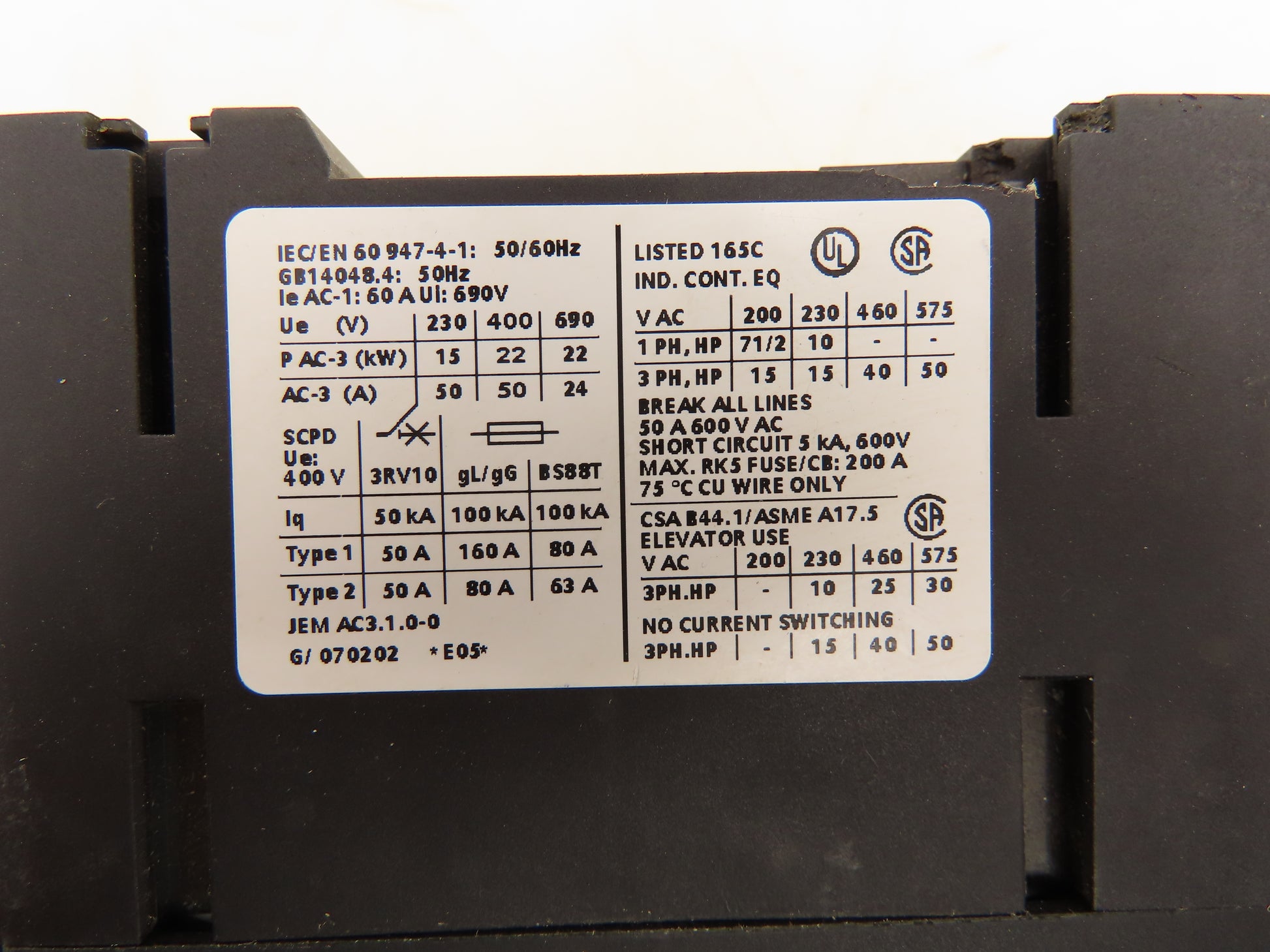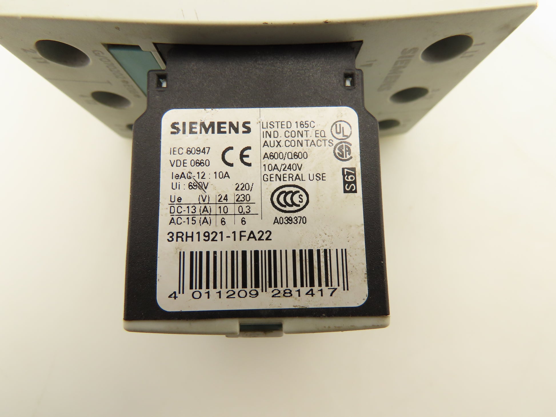 Siemens 3RT1036-1BB40 Motor Starter Contactor 460VAC 40HP Aux Relay 24VDC Coil