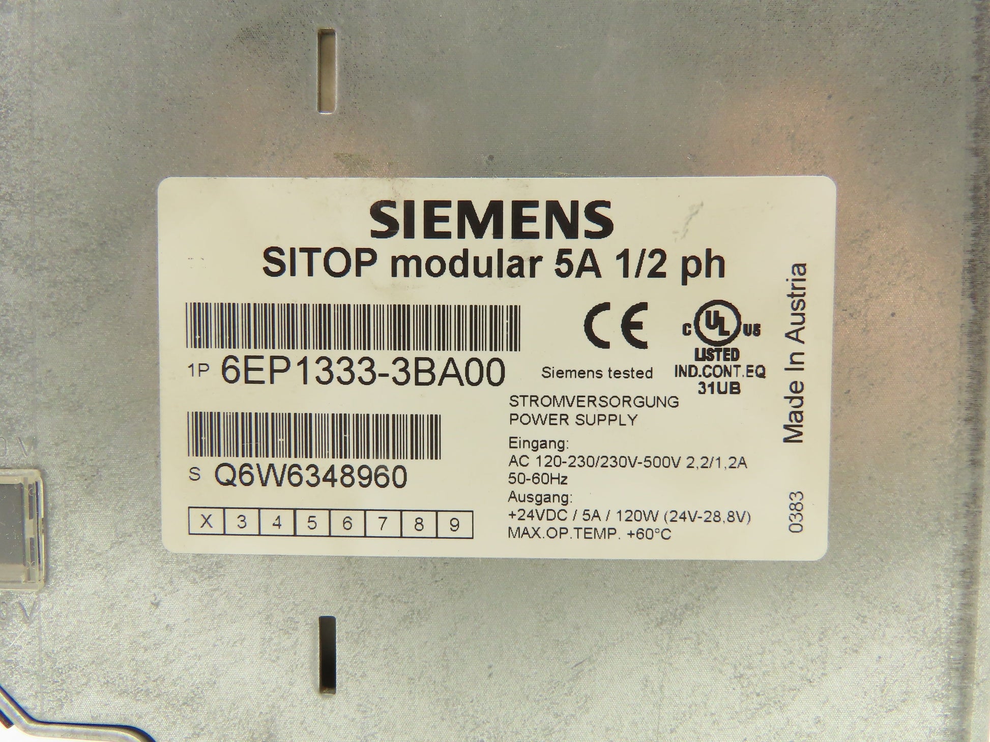 Siemens 6EP1333-3BA00 SITOP Modular Power Supply 24VDC 5A 1/2ph Lot Of 3