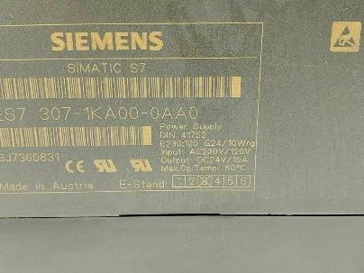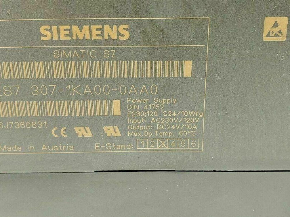 Siemens 6ES7 307-1KA00-0AA0 Simatic S7 Power Supply 24VDC