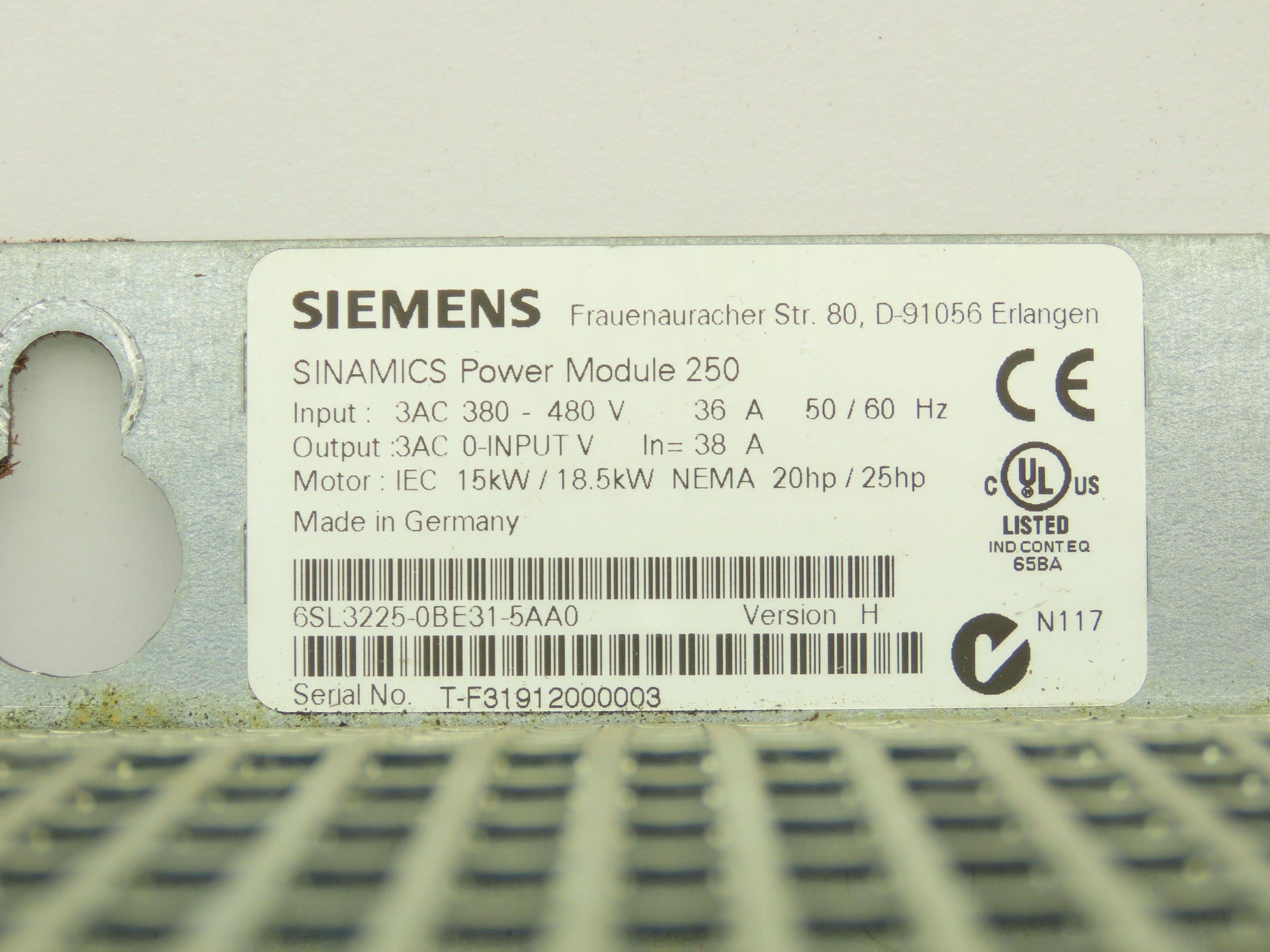 Siemens 6SL3225-0BE31-5AA0 Sinamics AC Drive 480V 25HP 18.5kW 36A
