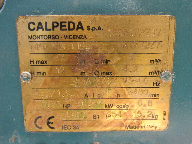 Siemens Dematic NMD 20/110Z 3/4Hp Centrifugal Pump 254/440V 3Ph 60Hz 1-1/4"x1"