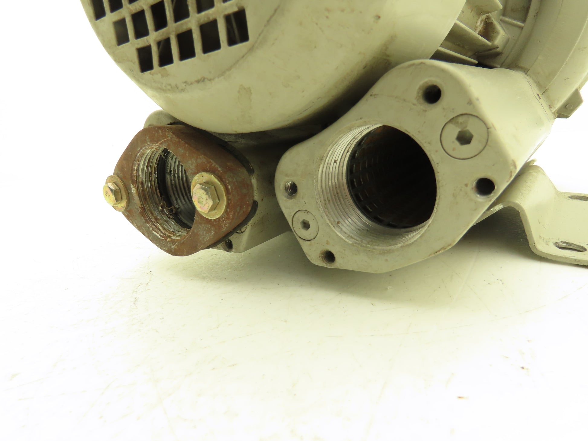- 1-1/4" NPT connections. One is missing a flange.