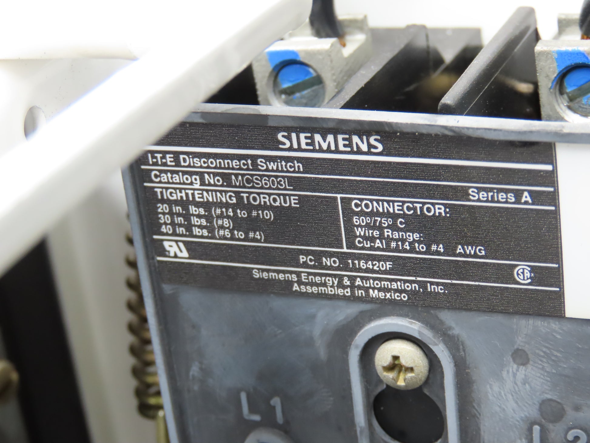 Siemens MCS603L Combination Bucket Breaker MCC Fused 600VAC 3Ph No Starter