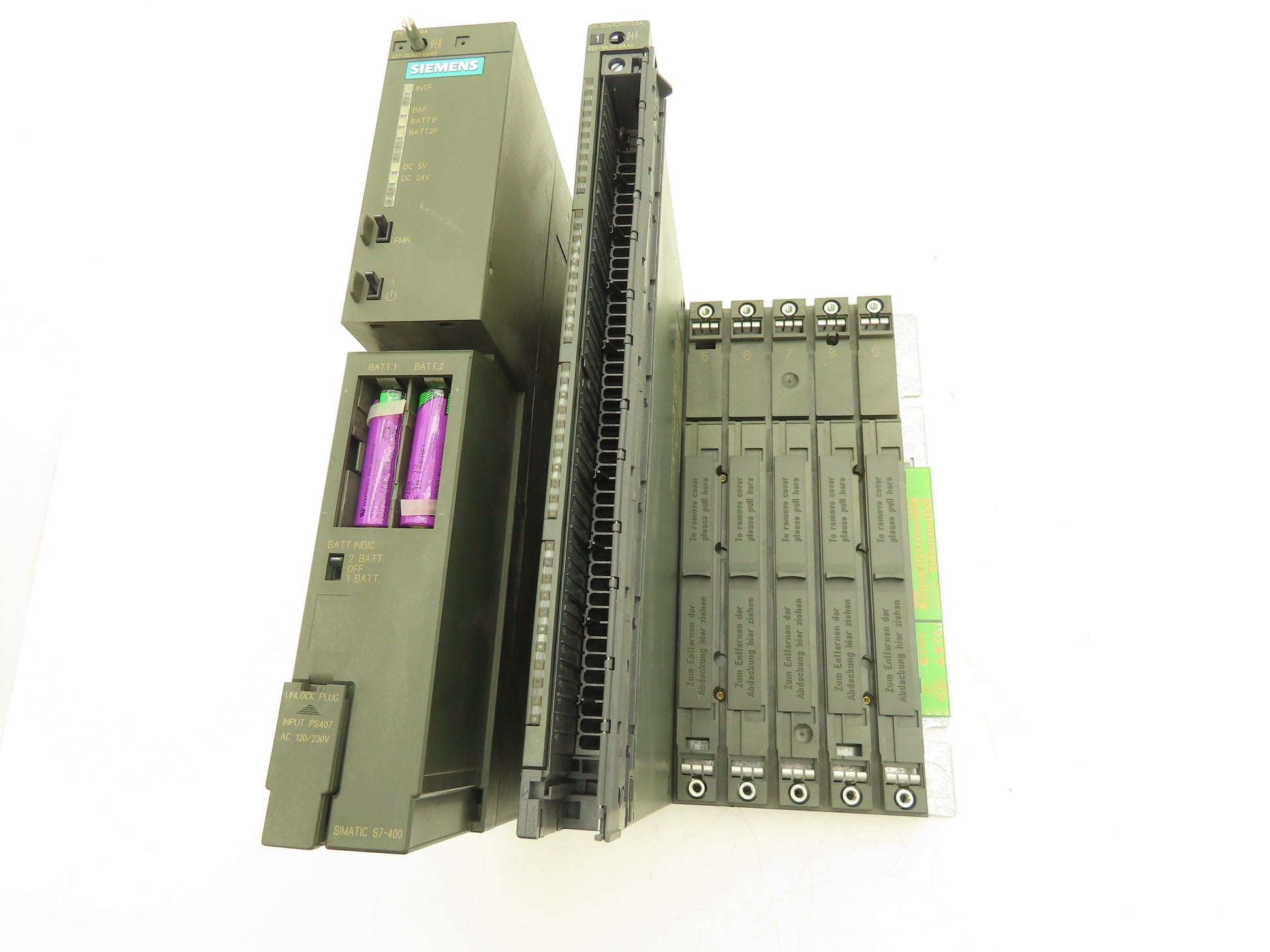 - 407-0KA01-0AA0 power supply 5/24VDC output, 120/230V AC/DC input. Batteries tested good.