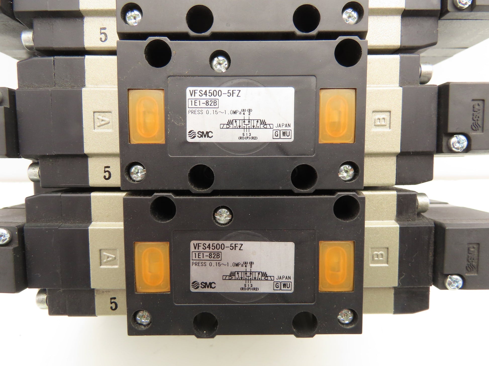 SMC VFS4500-5FZ Pneumatic 5-Station Manifold 5/3 Solenoid Valves 24VDC 1/2" NPT
