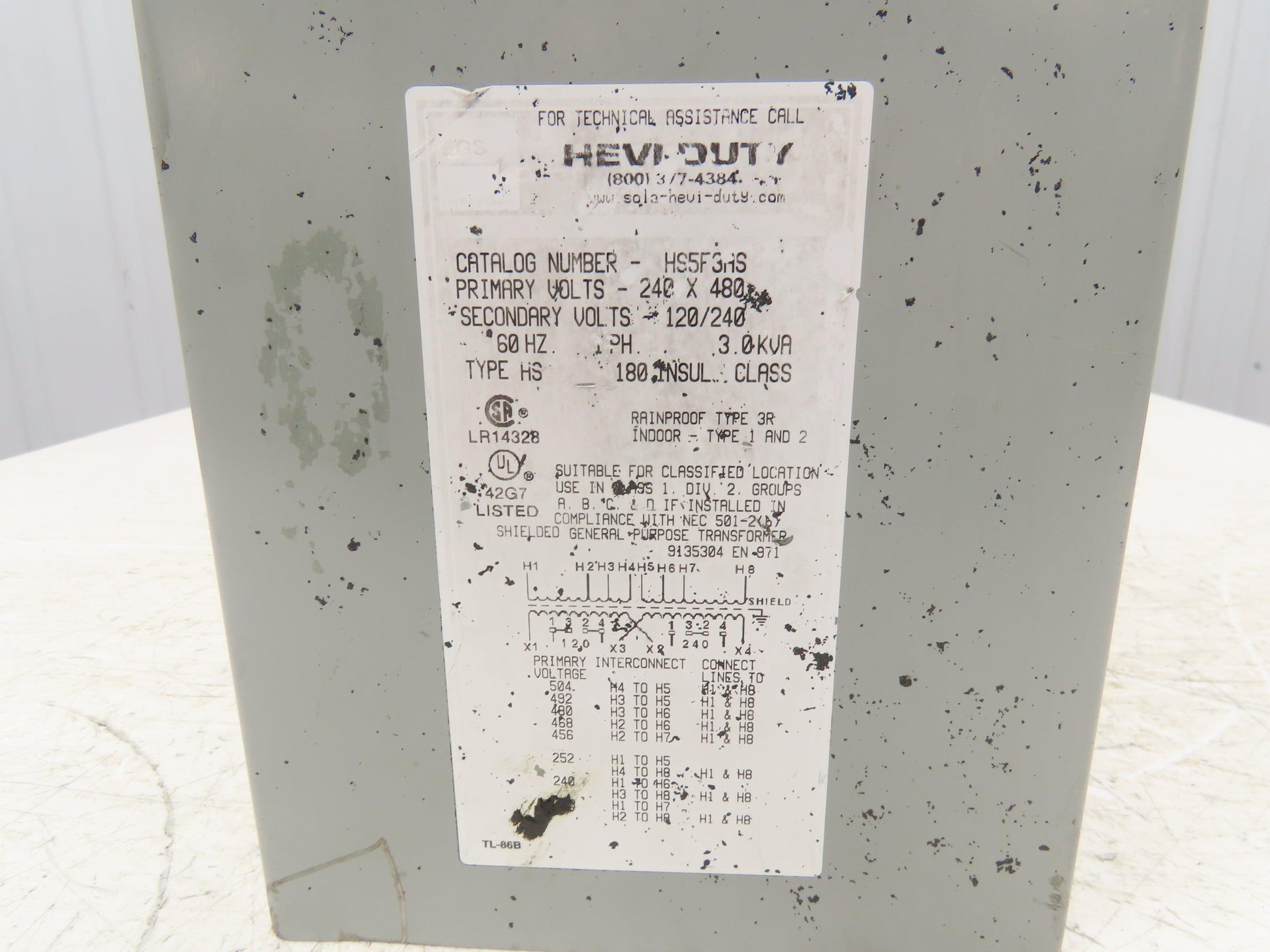 Sola Hevi-Duty HS5F3AS Transformer 3kva 1PH 240/480HV 120/240LV Type 3R