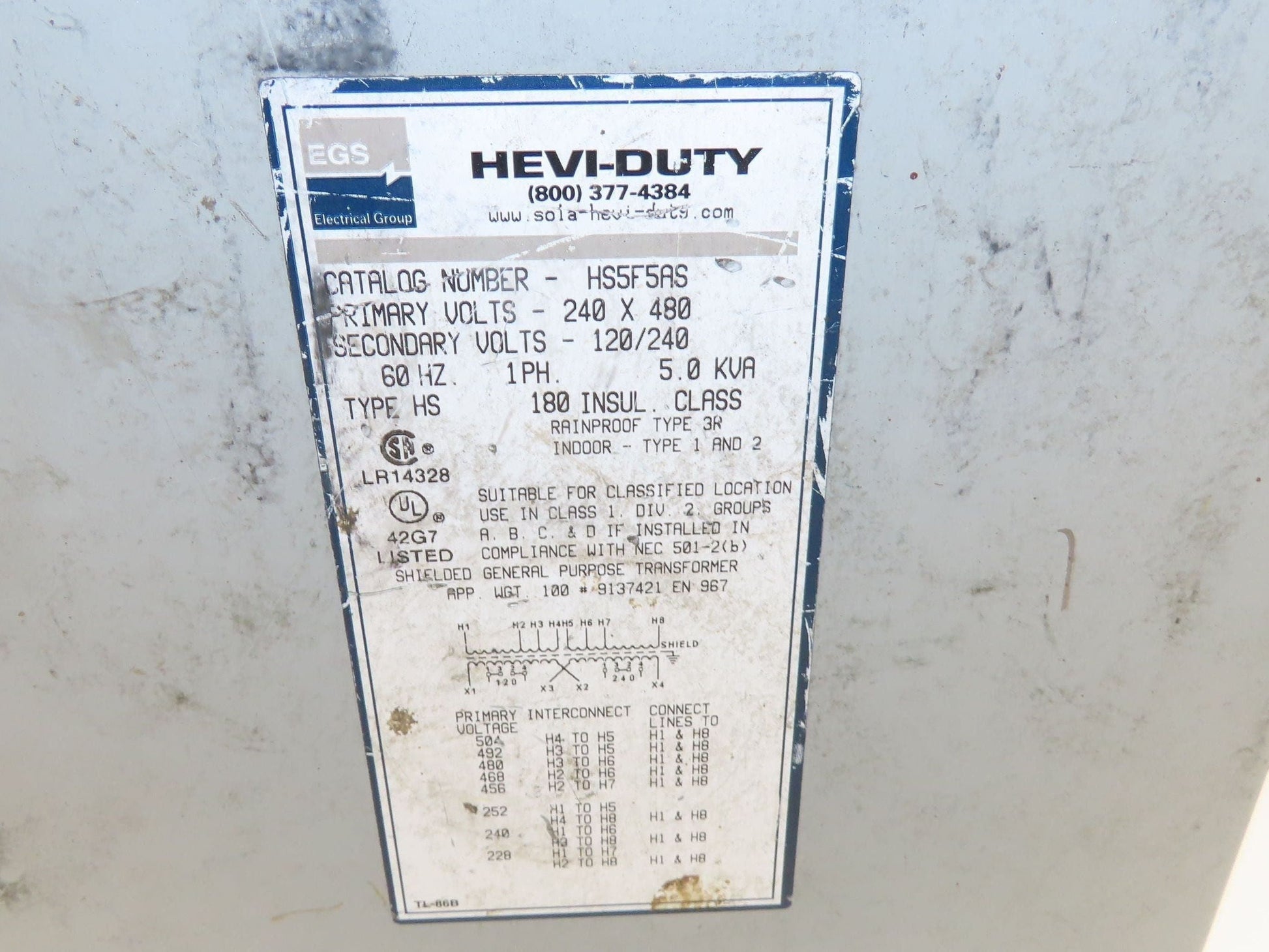 Sola Hevi-Duty HS5F5AS Wall Mount Transformer 5KVA 240x480V - 120/240V 1PH 3R