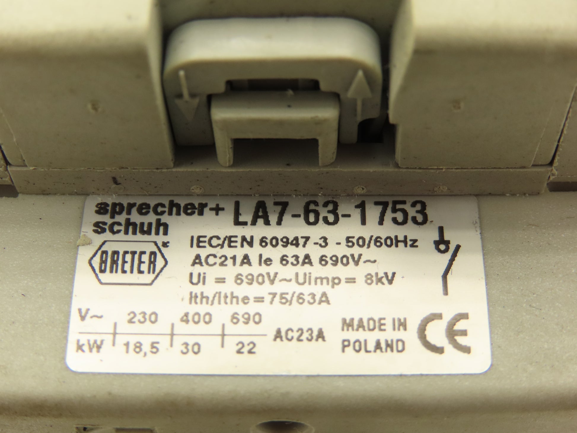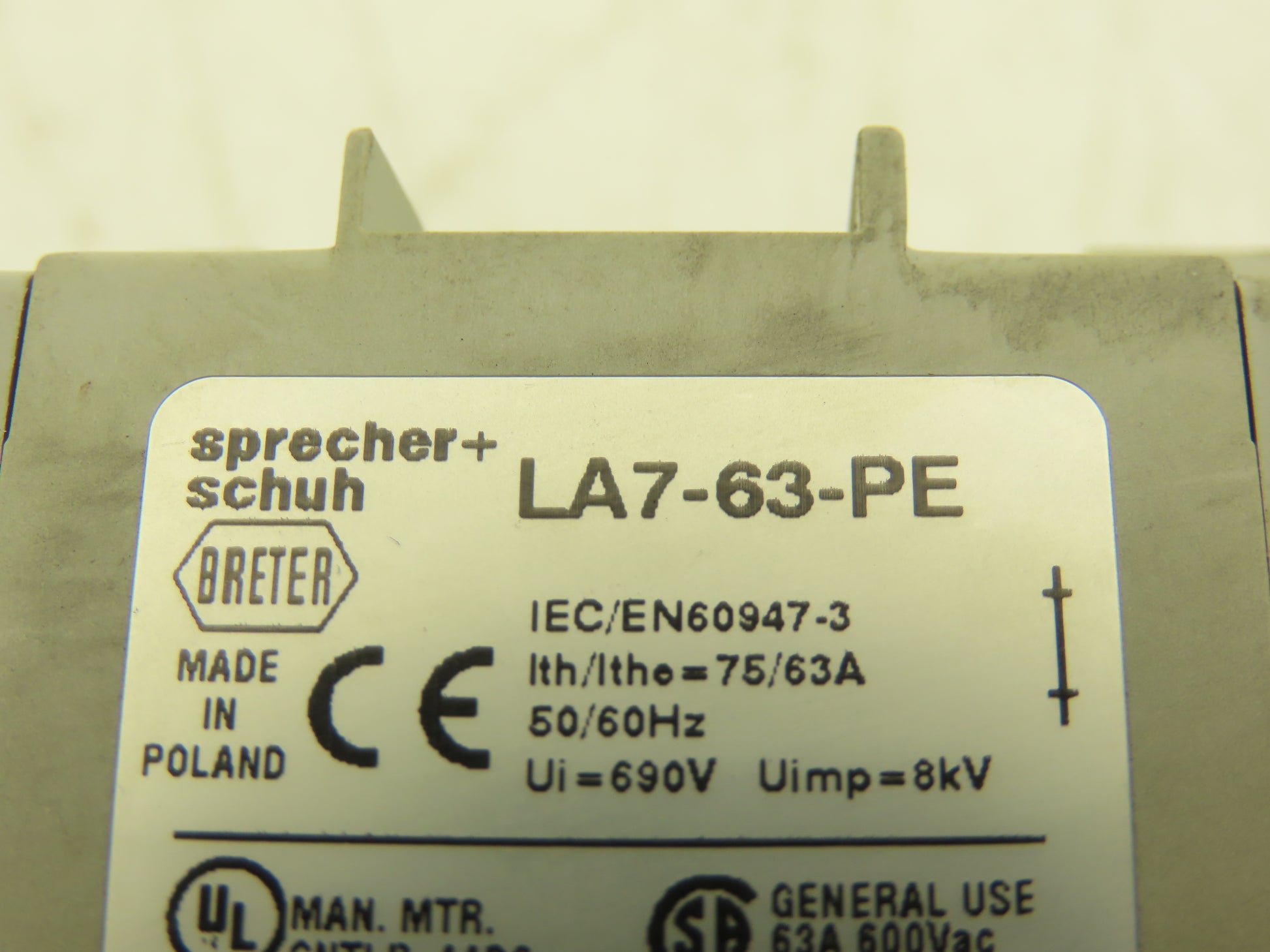 Sprecher+Schuh LA7-63-1753 Motor Disconnect Switch Through Door 25Hp 600v 3ph