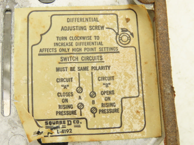 Square D 9012 AMW1 Pressure Switch 0.25-2.5# 120V-600VAC Lot Of 4