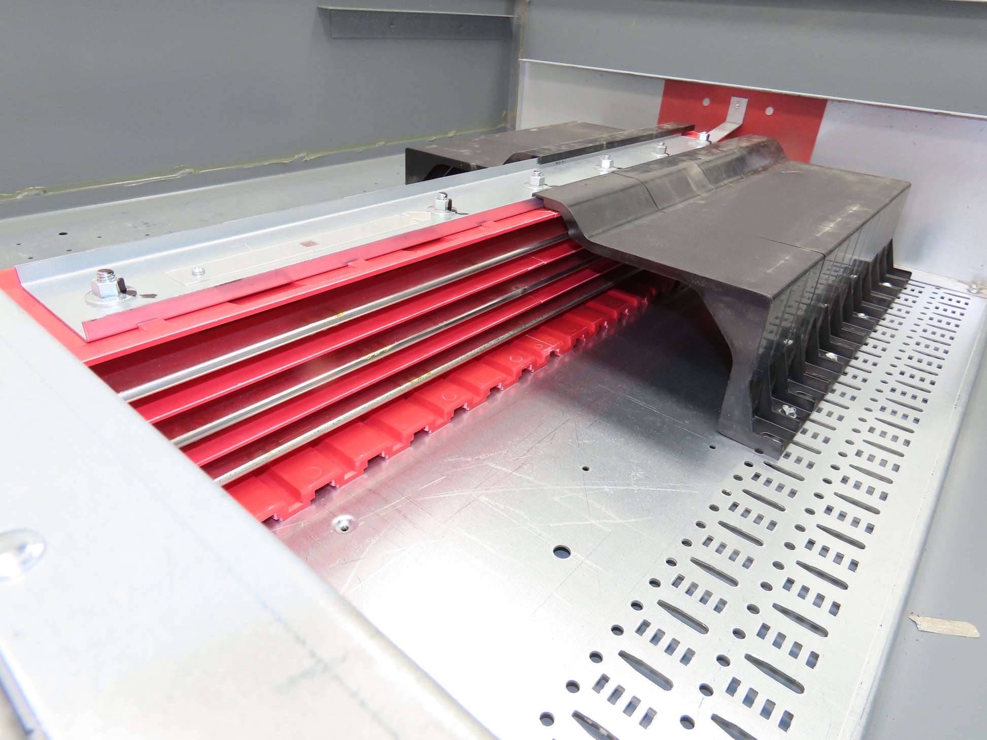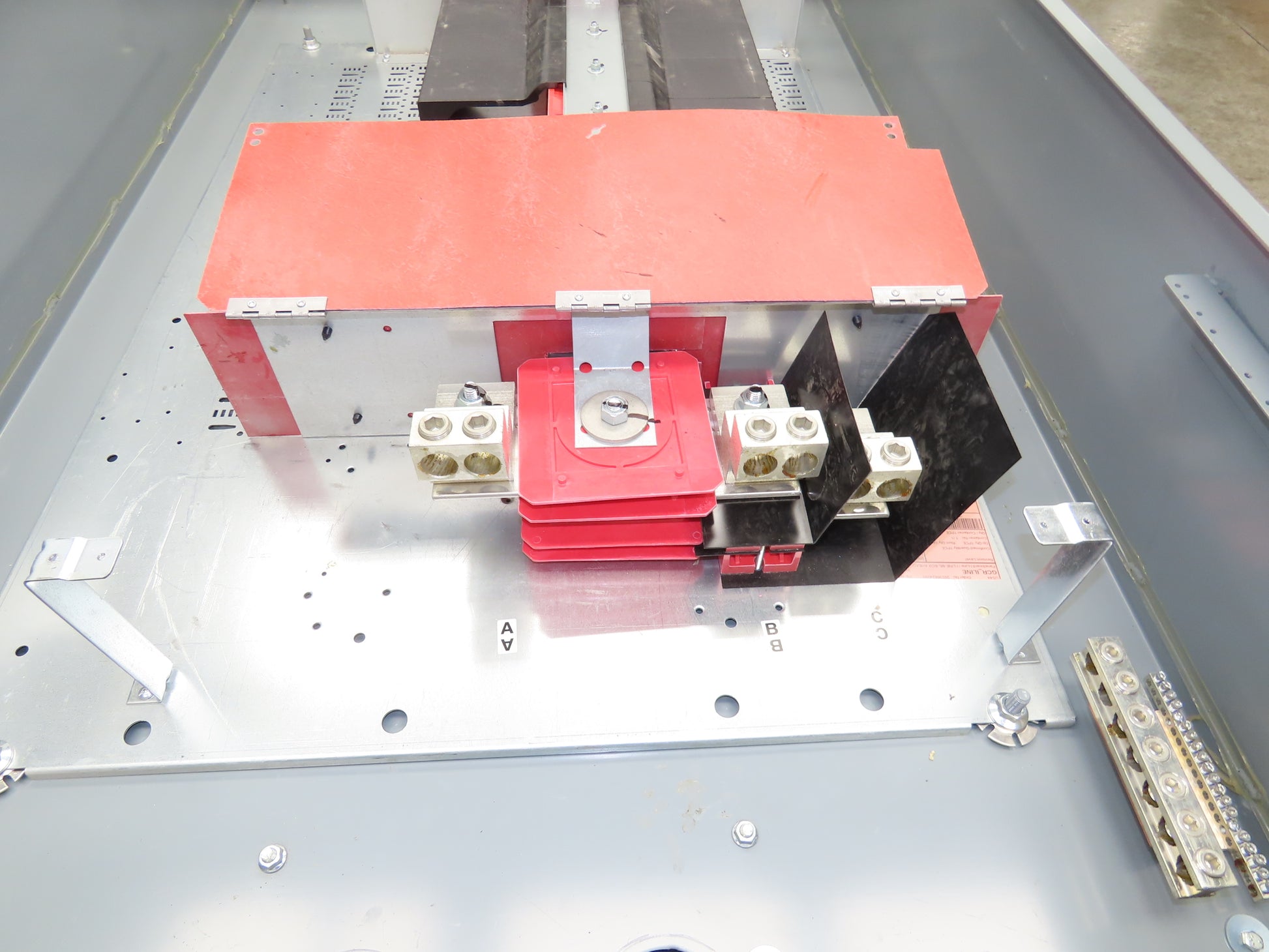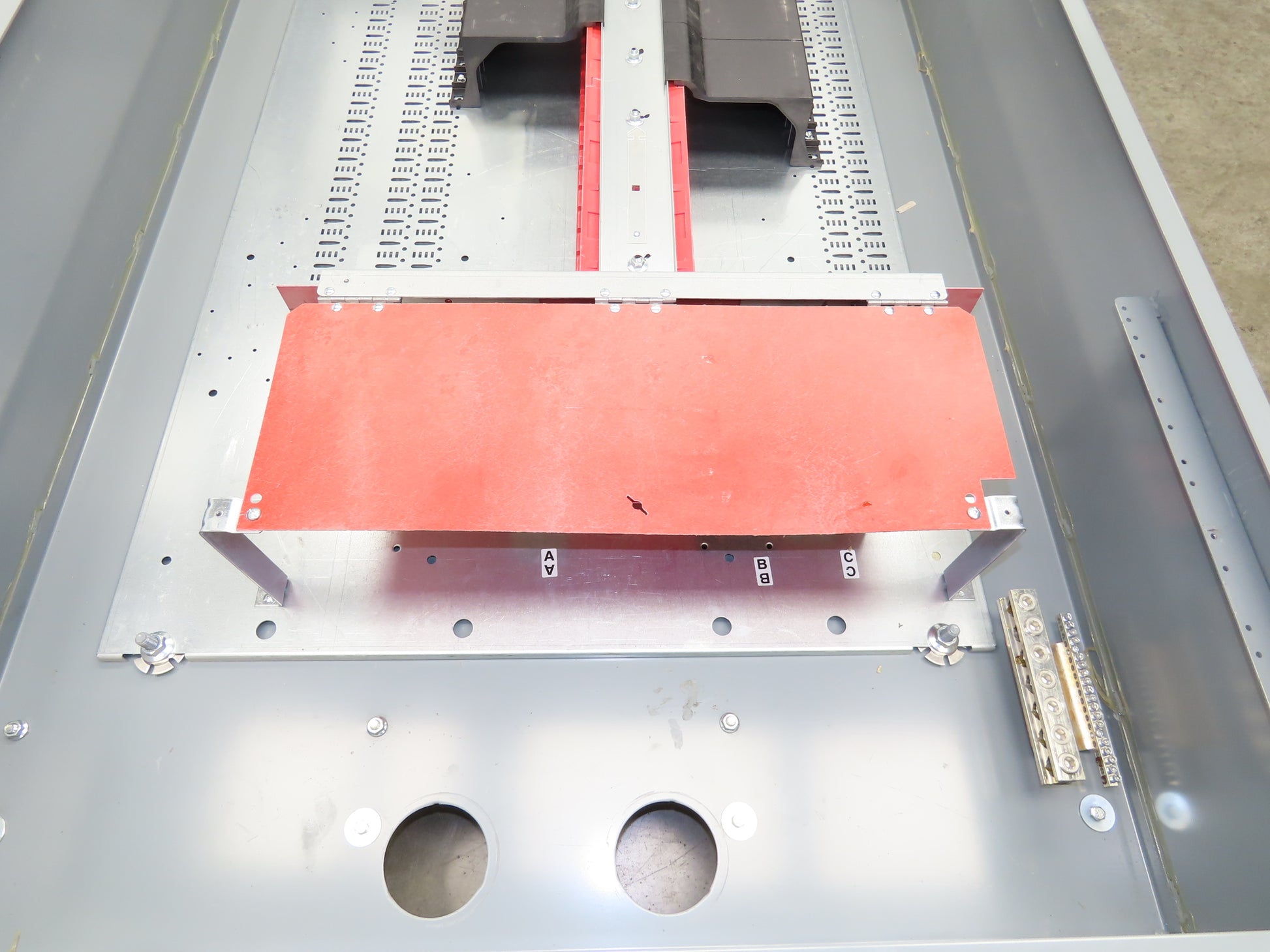 - Main lug connection. The right side is deeper for large amp breakers