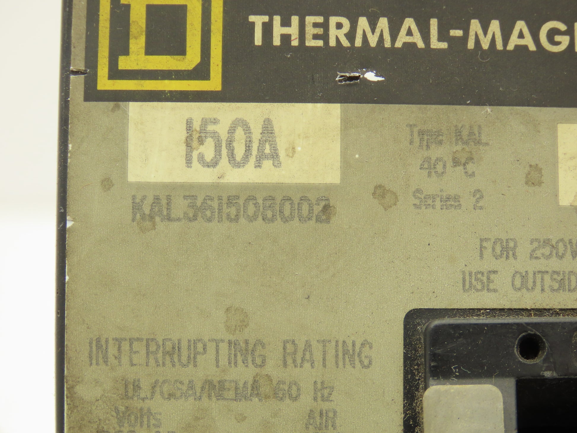 Square D KAL36150 Molded Case Circuit Breaker 150 Amp 3 Pole 600V Type KAL
