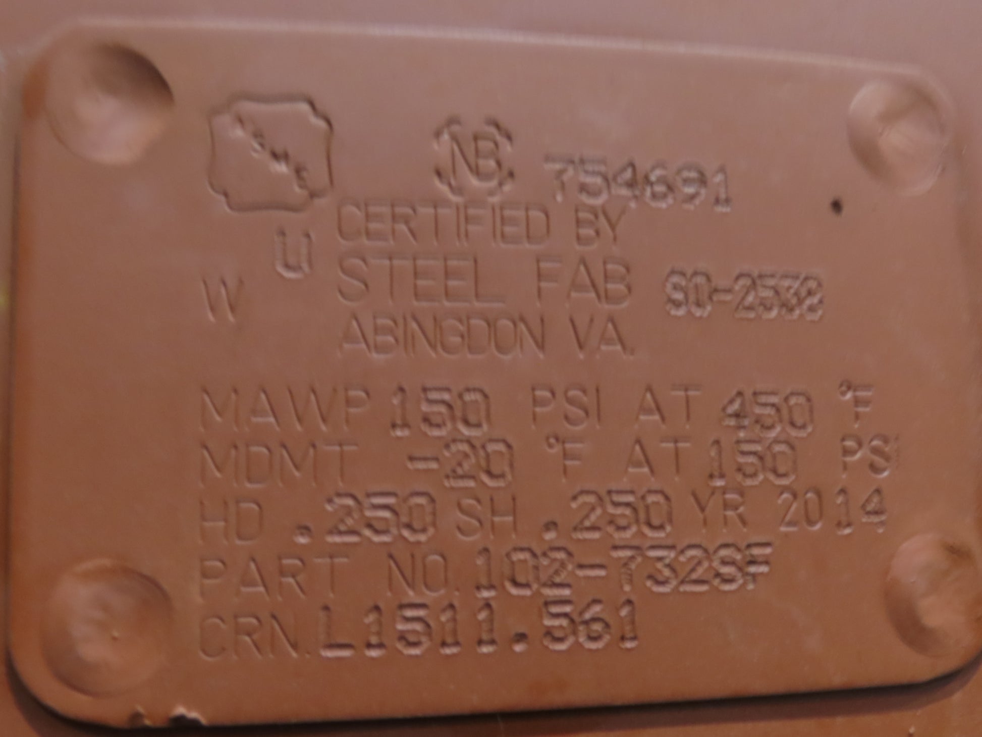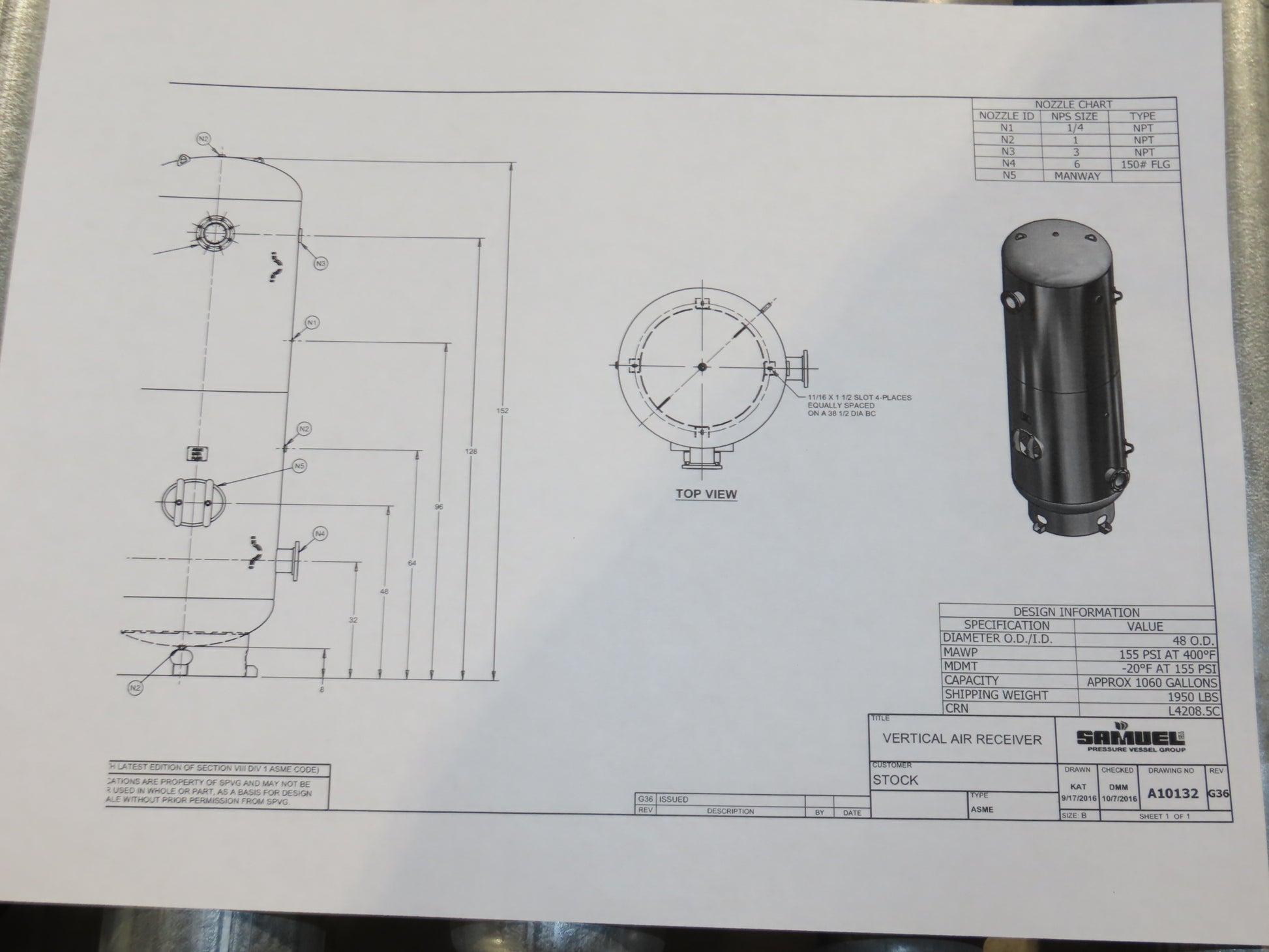 Steel Fab Vertical Compressed Air Receiver Tank 1060 Gallon 150 PSI 46"x 156"